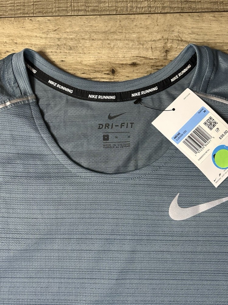 This Nike Dri-Fit tank top is perfect for running and jogging, thanks to its sleeveless design and pullover closure. The fabric is made of 100% polyester and is designed to be medium wash, making it a durable and long-lasting addition to your activewear collection. The blue/gray color and standard fit make it a versatile piece that can be worn by any man, in any size medium. The Nike Dri-Fit technology ensures that you stay dry and comfortable during your workout, thanks to the breathable fabric. This tank top is perfect for any occasion, whether you're hitting the gym or going for a jog. It is a must-have for any man who wants to stay comfortable and stylish during his workout routine.