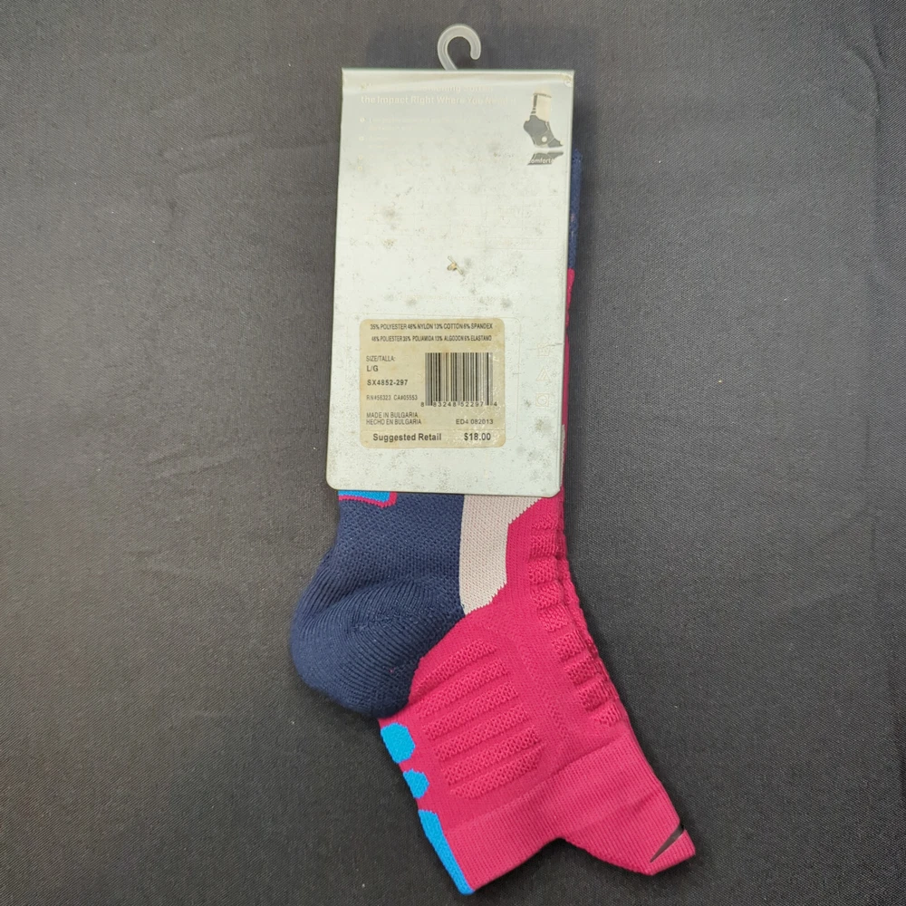 Nike Hyper Elite Quarter Cut Socks Size Large Maroon/Blue Brand new with tags 100% Authentic Fast Shipping: Ships in 1-2 business days from Illinois Many colors available, check out my page to see them all Message me with any questions The Nike Elite Basketball Crew Socks feature Dri-Fit fabric that keeps your feet cool and comfortable. It’s made for durability and offers a supportive and snug fit. The Nike Elite Basketball Crew Sock is a must own for any basketball player. Perfect for basketball, volleyball, and other sports Pair different colorways with your Kobe's, Lebron's, KD's and more. Performance basketball crew socks deliver superior fit and comfort. Strategically placed cushioning absorbs impact Dri-Fit technology helps keep feet feeling dry and comfortable. Left/right anatomical design for targeted comfort. Ventilation zones promote breath-ability to keep you cool 63% polyester, 18% nylon, 16% cotton, 3% spandex Size Guide Small: Youth 4-6 Medium: Men's 6-8 Large: Men's 8-12 Extra Large: Men's 12-15