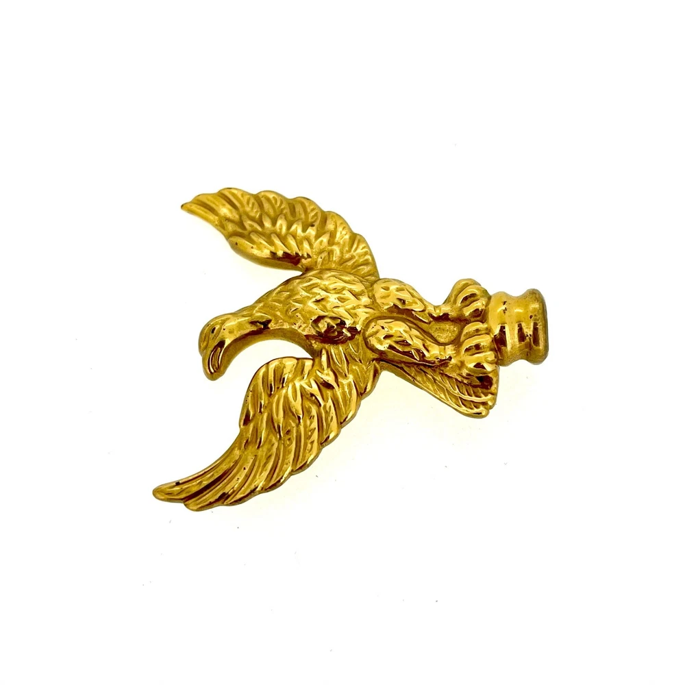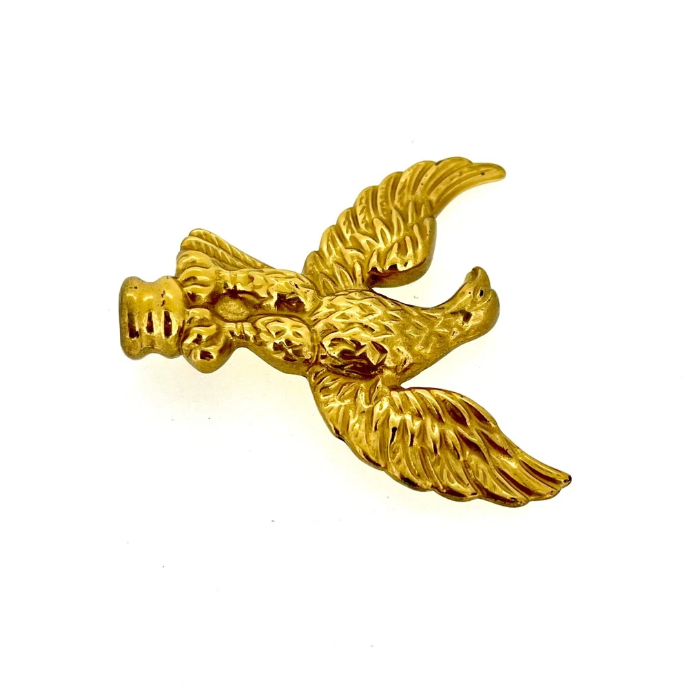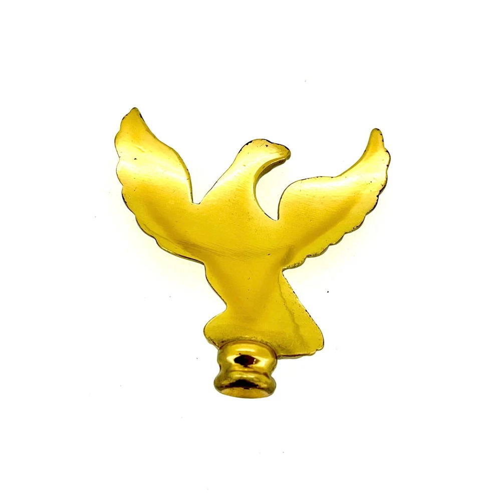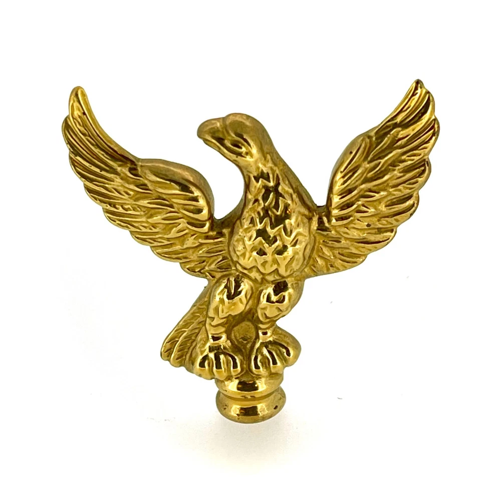 New Old Stock Polished Brass Clock Case Foot – 41mm Wide, 12mm High, 58mm Corner to Corner Item Description Overview: Condition: New old stock (NOS) – unused but stored for an extended period Material: Polished brass Design: Eagle-shaped finial Dimensions: Total Height: 52mm Width (Wingspan): 50mm Base Diameter: 10mm Details: This polished brass eagle-shaped clock case finial is a striking and regal addition to any clock restoration or decorative project. The eagle design symbolizes strength and elegance, making it a perfect choice for enhancing antique or vintage clock cases. Features: Material: Solid polished brass with a reflective, high-shine finish. Design: Intricate detailing of the eagle’s wings and body for a sophisticated appearance. Compact size suitable for various clock types. Condition: New old stock (NOS): Unused but may show minor signs of age from long-term storage. No dents or damage—ready for installation. Compatibility: Suitable for a variety of clocks, including longcase (grandfather), mantel, and bracket clocks . Please refer to the dimensions provided to ensure compatibility with your clock case. Additional Information: This eagle finial is ideal for restoration enthusiasts, adding a unique and elegant touch to any clock. Whether you’re replacing a missing finial or upgrading the style of a timepiece, this decorative brass topper will make a standout feature.