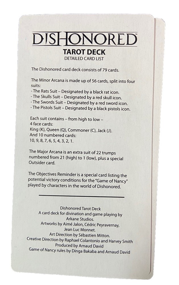 New Opened Box Dishonored Tarot Card Deck Preorder Promo. The box is slightly worn but the cards are in perfect condition. Opened but never used.