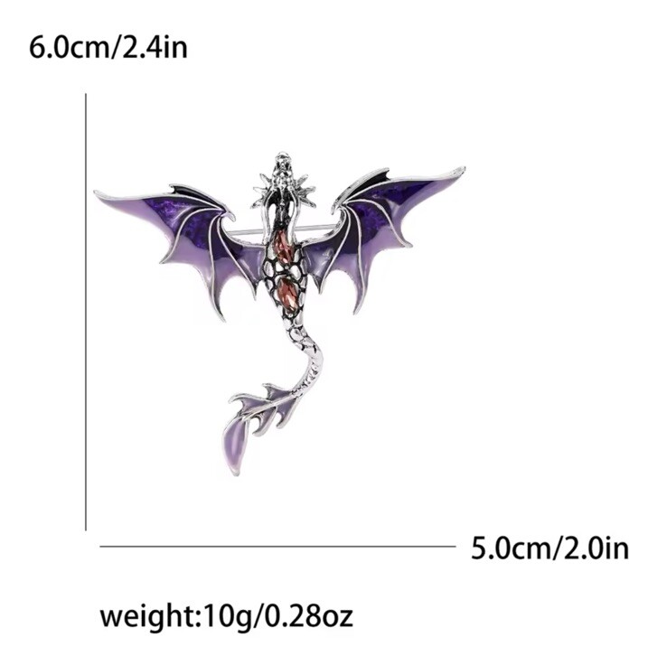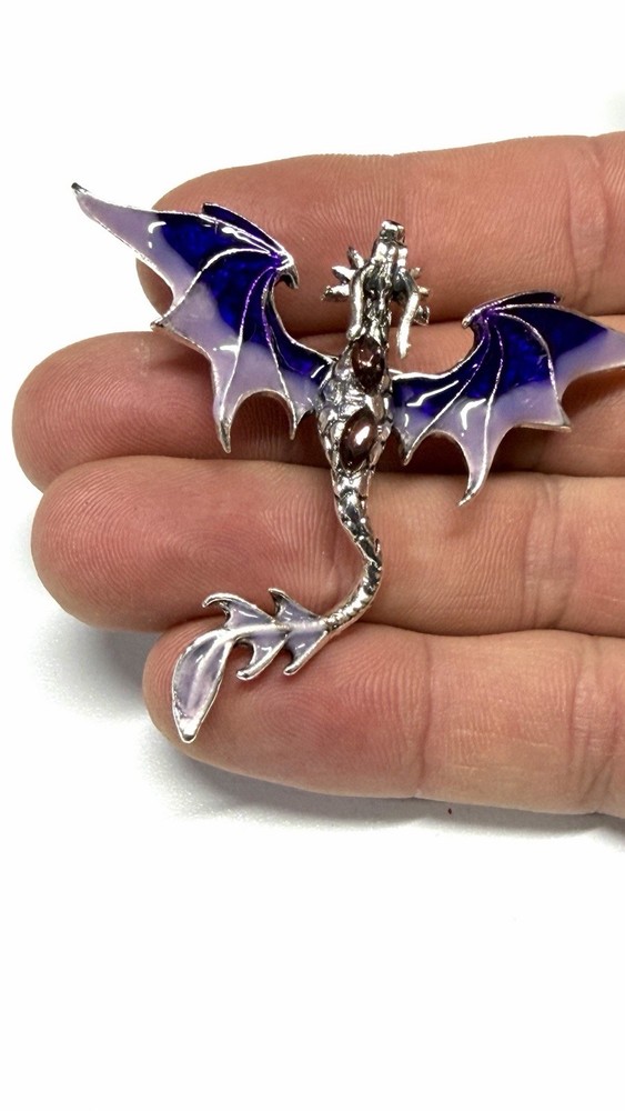 New - Purple and Silver Flying Dragon Brooch. Exactly as shown/described. Safely packed and received very quick. Good quality and value. I also received a free butterfly brooch and some lovely butterfly stickers. I would have no hesitation buying from this seller again in the future.