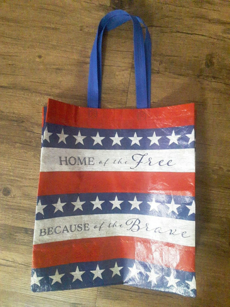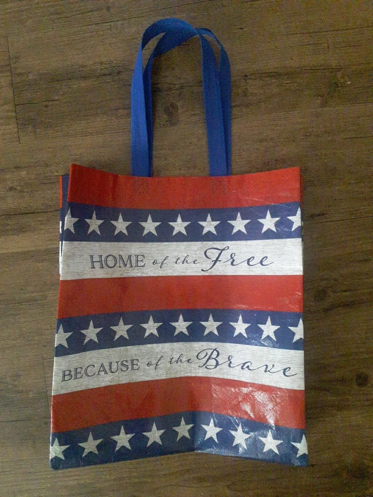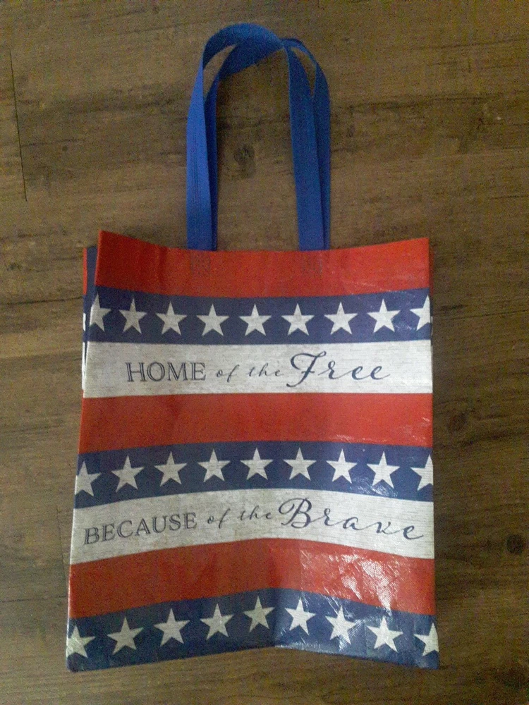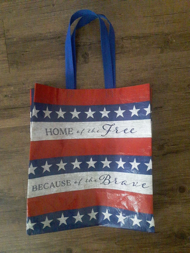 New Red White Blue Home Of Brave Reusable Shopping Gift Bag Recycled Material. Condition is New. Shipped with USPS Ground Advantage.