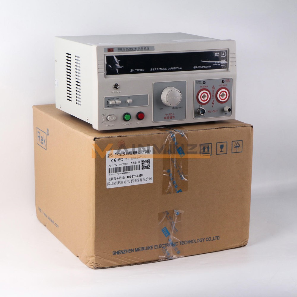New Rek RK2672AM Withstand Hi-Pot 5KV(AC/DC) 100VA Tester Withstand Voltage RK267 series voltage withstand test instruments are for general- purpose HV test operation, It can be widely used for voltage withstand test in electrician’s assistant instrument , rubber-wooden facility , voltage convertor , wires , power meter , motor, power supply plug, cables and all kinds of electronic and electric products. As the launch of the national security standard, Voltage withstand instrument has become one of necessary withstand test instruments to the radio and electronic products manufacturer. Operating request: Environmental temperature 0~40 ℃ R elative dumidity≤75% Paraments Model RK2672AM Description Klgital display with remote control Test Voltage (AC) 0~5KV +/-5% Test Voltage (DC) 0~5KV +/-5% Leakage Current (AC) 0~2/20mA +/-5% Leakage Current (DC) 0~2/10mA +/-5% Timing (s) 0~99s; Manual control Pmax 100VA Input Voltage 220V Weight 24LB Details Pre-used Caution Read the following items carefully before operating RK267 series voltage withstand test instrument 1. Use three-hole power supply plug and insure GND connection well. 2. GND port and power supply GND port should be connected well 3. Wear insulation glove, stand on insulation mat 4. Anti-clockwisely circumvolve “ V-ADJ ” rotary switch to the maximum before turn on test instrument. 5. Before preset all functions, reset instrument 6 . Don ’ t connect test port and test wire when doing test 7. Don ’ t connect HV output port with shield box or GND wire to avoid instrument damage. 8. Turn off power when accident take place 9. Examine and repair when Indicator or annunciator is out of function 10. Operate carefully to avoid hazard when take the remote test. 11.The instrument must be placed on the worktable of conductive materials 12.The operator can not wear clothes with metal decoration or wear metal accessories 13.When the tester is in the test conditions, the test line, the test probes, output end , and the test objects are all with high pressure, do not touch! Item Included: Withstand Hi-Pot Tester - RK2672AM 1×Withstand voltage test equipment 1×High voltage test bar 1×Remote control test bar 1×Ground wire 1×power cord Notice: Because,the international air shipping forbid to ship liquid,powder and batteries, If you purchased goods containing such items, we will not be putting them packing. Thank you for your support. Payment must be made within 12 days after the auction/bid ends, or eBay will open Unpaid Item case automatically later. Please read this before buying International Shipping may Be Delayed Due to Customs. Customers are Responsible For All Import Charges, Tariffs, Duties, Taxes, and Fees Associated with Import of the product. Shipping Charges does not include any Import Charges, Tariffs, Duties, Taxes, and Fees Associated with it. We are not responsible for undeliverable address. We reserve the right to charge the shipping fee again for returned items due to wrong address. Items are generally shipped within 10 business day after your payment has been cleared (Sat. & Sun. excluded.) Dear friend, your happy is very important to me!.we stand behind every product we sell.Your bid is a contract - Place a bid only if you're serious about buying the item. If you are the winning bidder, you will enter into a legally biding contract to purchase the item. If payment is not received within 7 days, item may be offered to the next highest bidder or relisted at the seller's sole discretion.If you're not pleased with your purchase, we'll be happy to make an exchange or refund the product price less S&H within 7 days of your purchase. For any exchange or refund, we need the original receipt or a record of the purchase in our system, and the product must be in its original condition, including the box, packaging, and all accessories.Shipping and handling charges are not refundable. We are professional EBAY sales team and lots of ebay buyers very satisfied with our services.You can enjoy top-quality product and high-quality services from us, Trust me that you will have a pleasant shopping experience in here. Please contact us with any comments, questions or suggestions that you may have bysending ebay message, All the mail will be replied within 24 hours. Please ensure your mail box would not blocked / filtered our mails.we will be happy to assist you.please feel free to contact us for WHOLESALES deal,we will surely give you a satisfatory price.We would try our best to serve you with any question / problem. Please contact us first before leaving Negative / Neutral Feedback or open any cases.We work 6 Days a week From 9:00am - 6:00pm Monday - Saturday CHINA Time.