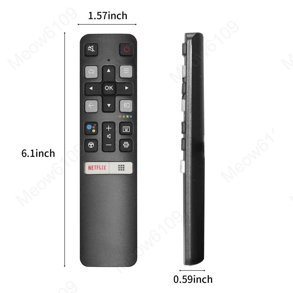 SHIP ALL ITEMS WITHIN 24 HOURS USPS FIRST CLASS WITH TRACKING NUMBER SERVICE Welcome Retail, Wholesale & Drop-Shipping! Description: This is the replacement remote control, No Voice Search Perfect to replace your broken or old one Fits for RC802V FNR1 No programming is needed. Need 2 AAA battery, not included in the package Compatibel with All TCL Android TV Models: 40S330 32S330 65Q637 55Q637 55S430 43S430 65Q637 55Q637 43S434 50S434 55S434 65S434 75S434 43P30FS 32P30S 49P30FS 32S6500A 55EP680 32A325 32A323 40S6510FS 40S6510FS 40A325 40A323 40S334 32S334 70S430 43S6500 43P8M 43P8M(D6) 43P8 43P8(F604A) 43P717(V83) 43P715(V83) 43P65US(F604) 42S6500 40S6800FS 40S6800 40S65A(F6N RIMLESS) 40S6500FS 40S6500 40S615(F6N RIMLESS) 32S6800S 32S6800 32S65A 32S6510S 32S6500S 32S6500 32S615 32S60A 32S5200 49S6510FS 49S6500FS 49S6500 43S6800FS 85P8M 85P715 85P715(D6) 75P8MR 75P8M 75P715 75P715(P8) 75C815 65T8S 65T8(F604) 65P8S 65P8S(D83) 65P8M 65P8M(D6) 65P8 65P8(F6) 65P717 65P715 65P715(V83) 65C815 65C8 65C8(P81A) 65C8(P81) 65C717(P10) 65C716(P10) 65C715(P10) 60P8M 55T8S 55T8(F604) 55P8S 55P8S(D83) 55P8M 55P8M(D6) Package included: 1x Remote Control ( not included battery) Delivery details Contact us Return Policy Payment About us Delivery details We will ship out the item in 1-2 working day after receiving the payment. We offer USPS First Class with F ree Tracking Number Service to ensure your package arrive fast and safely. Usually the delivery takes 2-5 business days. If you don't receive the items after 10 days, please feel free to contact us. Please Make sure your shipping address is correct and includes your Apt#, Box# or Unit# if any. We are off on weekend, all orders from weekend will ship in next Monday. Contact us Any queries or issues incurred, please feel free to contact us via eBay messag e, we are always here ready for help. DO NOT open return request or leave negative feedback without asking for help. Highly appreciated your POSITIVE feedback & 5 star DSR. Enjoy shopping. Return Policy We offer 30 days refund or exchange policy on defective or wrong items since you receive the item. For any return, please feel free to contact us first, we will offer return shipping label for the defective or wrong items. Payment We accept payment via PayPal. You can pay with any major credit card, your paypal balance or linked bank account. About us We always try to offer the best quality items, the fasttracking delivery and best service to our Customers. If you have any inquire or problem before buy or after buy, please feel free to Contact us via eBay Messages, thanks.