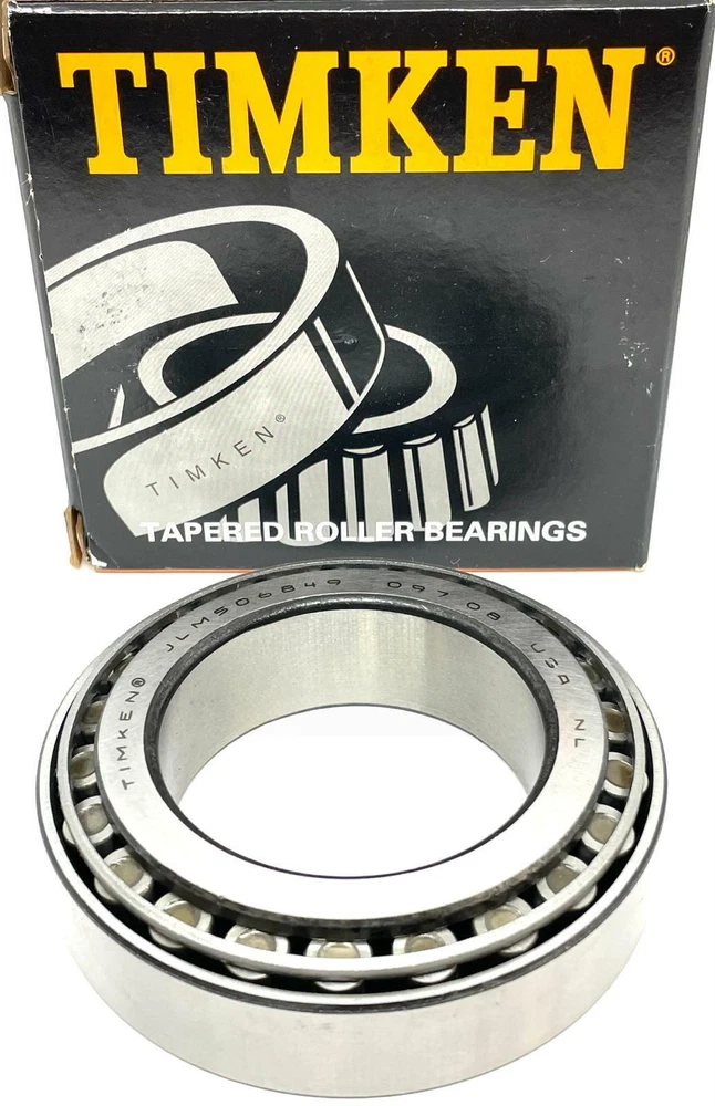 Description: Enduro Taper Roller Bearing Cone Part Number JLM 506849 Cup Part Number JLM 506810 Inner Diameter, d 2.1654 in. Outer Diameter, D 3.5433 in. Cone Width, B 0.9055 in. Cup Width, C 0.7283 in. Bearing Width, T 0.9055 in. Cone Backface Radius, R 0.06 in. Cup Backface Radius, r 0.02 in. Cage Type Stamped Steel Dynamic Capacity, Cr. 20600 N Static Capacity, Cor. 27600 N Weight 1.21 lbs. Manufacturer's Part Numbers: Timken JLM506849+JLM506810 Set 118