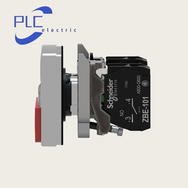 Illuminated double headed push button, Harmony XB4, metal, 22mm, 1 green flush I + 1 pilot light + 1 red projecting O, 1 NO + 1 NC