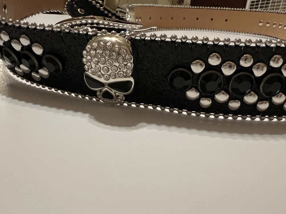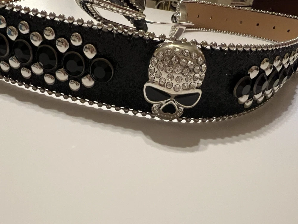Add a touch of Western style to your outfit with this stunning Skull Pirate belt. The black leather belt is accented with studs, buckles, and rhinestones, making it the perfect accessory for any cowgirl or pirate outfit. The belt is 1.5" wide and has an adjustable buckle, ensuring a comfortable fit for all sizes. This belt is perfect for those who love the Western theme and want to add a unique touch to their outfit. The Skull Pirate brand is known for its high-quality products, and this belt is no exception. Made with silver hardware and accented with a skull and cowgirl theme, this belt is sure to make a statement. Whether you're dressing up for a costume party or just want to add some flair to your everyday outfit, this belt is the perfect choice.