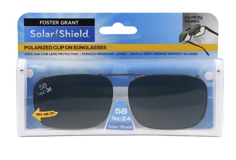 New Solar Shield Polarized Clip on Sunglasses 58 Rec19 Glare Scratch Resistant. Condition is brand new in the package. Shipped with usps mail.