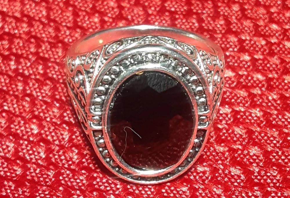 The "New Stainless Steel Black Onyx Royal Court Ring" is a striking piece of jewelry designed for those with a regal and sophisticated style. The ring features a bold black onyx stone set in a durable stainless steel band, giving it a sleek and modern look. With a ring size of 9, this piece is perfect for adding a touch of elegance to any outfit, making it a versatile accessory for any occasion.