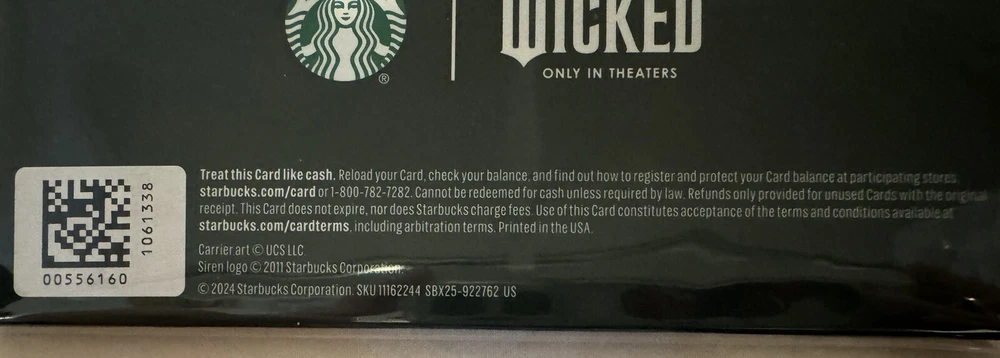 This Starbucks Wicked Limited Edition Gold Keychain gift card is the perfect addition to your Starbucks collection. With $50.00 already loaded on the card you can enjoy any of your favorite food and beverage items without worrying about running out of cash. This gold metal keychain comes in a lovely Elphaba green collector envelope and is still sealed. Gift card is about half the size of the average gift card which makes it a great addition to your keychain. The Starbucks Wicked LE Gold Keychain GC is a must-have for collectors and enthusiasts alike. It is valid for use at any Starbucks location throughout the United States, and it has no expiration date. Add it to your collection or give it as a gift to a fellow Starbucks lover. Smoke Free Home Free Shipping