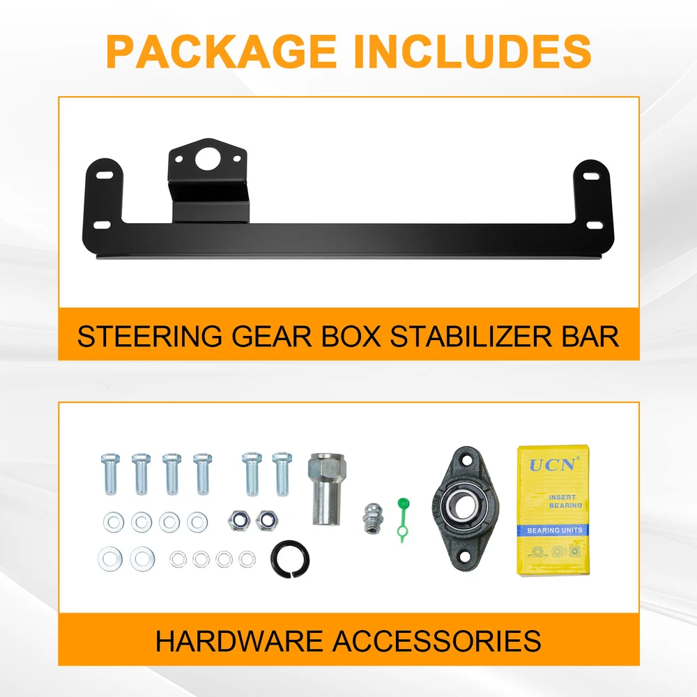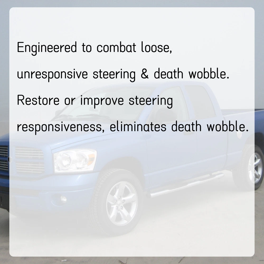 New Steering Gear Box Stabilizer Bar For 03-08 Dodge Ram 2500 3500 4WD 4X4 Feature Engineered to Combat Loose, Unresponsive Steering & Death Wobble Restores or, in some cases, Improves Steering Responsiveness Reduce or, in some cases, Completely Eliminates Death Wobble Single Piece Bracket Design for Extreme Strength Heavy-Duty Stabilizer Bearing Reduces Stress & Friction Corrosion & Oxidation Resistant finish Fits for For 2003-2008 Dodge Ram 2500 4WD For 2003-2008 Dodge Ram 3500 4WD Will NOT fit trucks with updated 2009+ gearbox installed. NOT fit 2WD Model NOT fit RAM Power Wagon For vehicle with OEM Factory style steering box ONLY Specification Condition: 100% Brand New Color: Black Material: Steel Surface Finish: Powder Coated Size: L 36-1/8 (in) * W 1-3/4 (in) Package Include 1 x Welded stabilizer assembly 1 x UCFL205-16 Flanged Bearing 1 x Sector nut 4 x M10 x 40 hex head bolt (stabilizer mount) 4 x M10 lock washer 4 x M10 washer 2 x M12*40 hex head bolt (bearing mount) 2 x M12 lock nut 2 x M12 washer 1 x 9/10" lock washer Shipping All items will be shipped out in 1 business day, no expedited service available. (USA only, Does NOT include Hawaii, Alaska or Puerto Rico, PO Boxes/APO's) Contact us Any Questions, Just feel free to contact us on eBay. We will reply you in 1 business day. On May 14, 2024 at 06:32:25 PDT, seller added the following information: