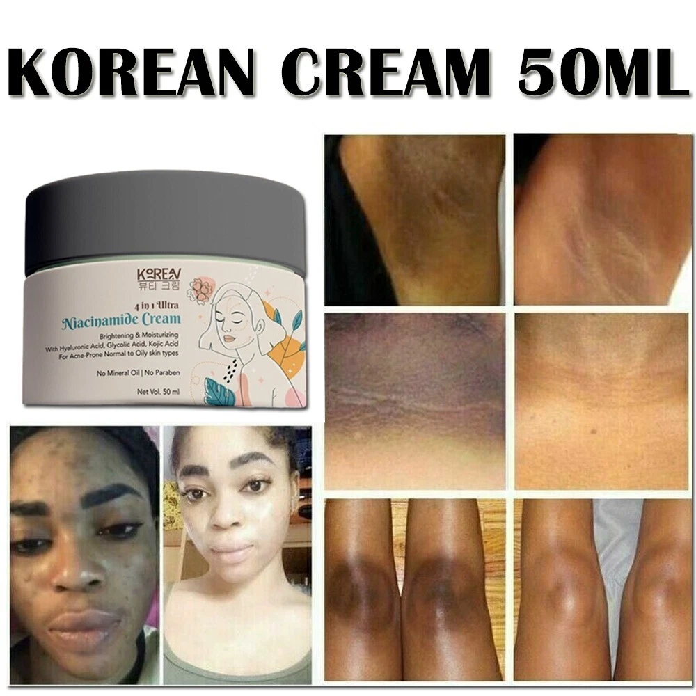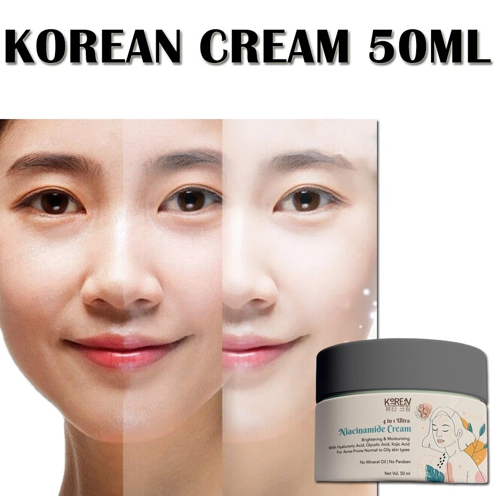 Korean Beauty Cream 4in1 Ultra Niacinamide Cream - 50g/1.7oz Ingredients: Niacinamide (Vitamin B3) Hyaluronic Acid Glycolic Acid Kojic Acid Benefits of Korean Beauty Cream : Brightens skin tone Reduces dark spots and hyperpigmentation Hydrates and retains moisture Smooths skin texture Fades dark spots and discoloration How to Use Korean Beauty Cream : Cleanse face and pat dry. Apply a small amount of cream onto fingertips. Gently massage onto face and neck in upward circular motions. Allow cream to fully absorb into the skin. Use daily, morning and night, for best results. Our Cream Suitable for All: All skin types Dermatologist tested No mineral oil or parabens Shipping Item will be Shipped Worldwide through India Post Private Couriers - Aramex / Fed Ex / Lexship / DHL / USPS / Shiprocket X / ShipGlobal Well Packed Depending on your Location Best Service Shipping will be Chosen to deliver your item ASAP . Every buyer will be provided with tracking number in order to track item online. Delivery will take :- 12 Days - 20 Days Depend on the location & Service Chosen In Rare Case it may Take more time as committed. in that case - kindly wait for some more days. Keep Tracking. Please Feel Free to Contact us. We will be happy to help you. Feedback's Kindly Leave us a Positive Feedback if you are Hap py with the product. If there is any kind of dis satisfaction . Please let me Know , i will surely solve the Issue. Thank you for Shopping from us. Note: This Product is designed to deliver optimal results, offering high-quality performance and satisfaction. Please note that individual experiences and outcomes may vary based on personal use, preferences, and unique circumstances. For best results, we recommend following the provided guidelines and ensuring the product is used as intended. Product result may vary for every individual.