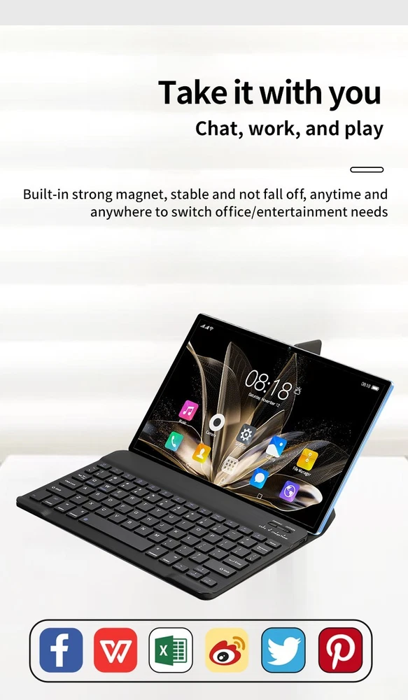 Tablet 10.1 inch Ultra Big Android 12 Tablets, 256GB Storage,8GB RAM, 8800 mAh Battery , 10-Core 2.0gHz CPU,2 Speakers, 4G/5G WiFi with Case Bullet Point ★ 10.1 LARGE DISPLAY& 10 CORE CPU: Experience ultimate performance with the Weiboer Android Tablet featuring a robust 10-core CPU, 8 GB RAM, and 256GB internal storage. Expand up to 512 GB with microSD (sold separately). Enjoy seamless multitasking on the fast and responsive tablet. Its 10.1inch 1920x1200 full screen with a wide viewing angle offers high-resolution images, providing a more realistic and powerful visual experience. ★ UPGRADED ANDROID 12 TABLET: 10.1 inch google android tablet is equipped with a new upgraded system "Android 12", providing a more personalized, safe and easy-to-operate system experience. You can install apps like Netflix, TikTok, YouTube, LINE, Yahoo, Twitter from the Google Play Store on your GMS certified tablet. ★ 8800MAH LONG LASTING BATTERY: The 10.1 inch Computer Tablets is equipped with battery up to 8800mAh. Achieve up to 8 hours of video battery life, and use the Type-C port to charge more easily, regardless of positive or negative. With a weight of 996g, it is very convenient to carry it with you whether you are working, studying or going out. ★ MULTIFUNCTIONAL 10.1 INCH TABLET: Equipped with a 13MP + 5MP camera and By combining it with the flash, it is thought that shooting in dark places will be really improved. iMeshbean tablets android Bluetooth 4.1 supports high-fidelity headphones for sound quality enjoyment. Great for work or pleasure, use this tablet for video conferencing, gaming, streaming, or even as an e-reader in your preferred language. ★ 2 IN 1 TABLE WITH KEYBOARD LEATHER CASE: Tablet connect with Keyboard, change 2 in 1 laptop; Tablet case, Screen protector and Touch pen can better use. ★ SEAMLESS CONNECTIVITY: Get fast and stable internet connectivity with 2.4G/4G/5G WiFi that offers better range and speed, undisturbed streaming, gaming or browsing. The sturdy metal frame adds durability to this WiFi Android tablet, making it perfect for everyday use . ★ IDEAL CHOICE FOR GIFT: With exceptional performance, a chic aesthetic, and exquisite packaging, this tablet stands as the ideal gift for occasions like Christmas, Valentine's Day, birthdays etc, Its impressive features ensure a memorable and versatile present for your loved ones. Specification 10.1 inch Tablet Brand BDF Model P14 Shell Metal aluminum alloy shell Color Black Display 10.1 inch Resolution 1920X1200 Keyboard Backlight Bluetooth Keyboard(Support external keyboard) CPU MTK Core 10 core Storage 8GB RAM +256GB ROM Camera Front Camera:500W Rear Camra:1300W Battery 8800mAh Operating system Android 12 Bluetooth BT4.2 Processor Speed 2.0 GHz Microphone 42db 2.2kΩ Speaker Built-in 8Ω 1W TF Card Micro SD Earphone 3.5MM Interface Type Cx1, headphone jack 3.5 mm x1, microSD slot x1 DC power x1 Power adapter 5V 2A Package included 1x14inch Tablet 1xbluetooth keyboard 1xCharger 1xKeyboard Case 1xWireless Mouse 1xTouch pen 1xEarphone 1xEnglish Manual Package List 1x10.1 inch Tablet 1x10inch bluetooth keyboard 1xCharger 1xKeyboard Case 1xTouch pen 1xEarphone 1xEnglish Manual