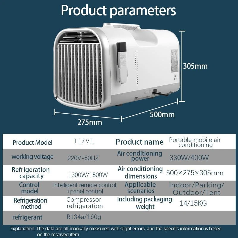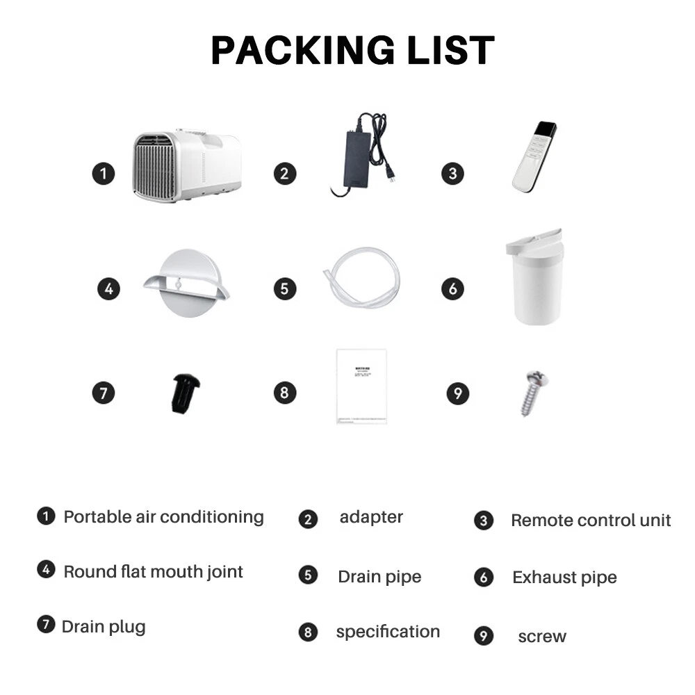 Store Categories Store Categories 24v RV Rooftop Air conditioner 12v RV Rooftop air conditioner air compreesor Air Filter Trailer Breakaway Switch Universal 12v Air Conditioner Tent Air Conditioner 12v/24v Air conditioner A/C Blower Motor Wheel bearings Other Portable 110V 24V Tent Air Conditioner 3-Wind-Speeds for Car RV Motorhome Product Description Name: Mobile Air Conditioner Cooling method:Compressor Colour:white Mode of use:Plug in power supply Cooling power: 280W Air conditioning technology: fixed speed Cooling capacity: 1300W Rated current:1.8A Max.input current:12A Max.input power:300w Power failure protection: Yes Applicable area: 5 sqm Max, working pressureon suction side/exhaust side:0.6/2.6MPa onsuclon side lexhsuse side:0.6/2.6MPa Maximum working pressureof heat exchanger:2.6MPa Cooling and heating type: Cooling type Whether circulating air volume: Yes Voltage/frequency (V/Hz): 24v/110v/50 Display mode: LED display Refrigerant: R134a -160gs Air conditioning frequency: 55Hz Wind sweeping mode: left and right swinging wind Fixed frequency/inverter: Fixed fr equency Indoor unit noise: les s than 55db Switching: touch screen, remote control Drainage or not: have drainage Features: with carry handle, timer shutdown Configuration: Independent Dehumidification Intelligent dehumidificationfor a healthy life No Installati on Required Plug in and use, no need to makean appointment for installation Light weight And Portable You can carry it anywhere yougo, it can be used anywhere R134a Refrigerant R134a refrigerant is a type of refrigerant that does not containoxygen atoms, does not damage the ozone layer, and has goocperformance (non flammable, non explosive, non-toxic, non irri-tating, and non corrosive) Touch Pane l The button panel is easy to Flexible selection of five modes Can be placed anywhere Flexible selection of five modes Can be placed anywhere Reduced Noise The operating sound is aslow as 45dB Outdoor can also provide peace of mind sleep No need for professional installation just plug in and use it Cool and refreshing, no need to wait Packing List: 1.COG machine 2.Exhaust pipe 3.Pipe joint 4.Drain-pipe 5.Drainage protec-tion plug 6.Screw 7.Instruction 8.Remote control Payment Policy Shipping Policy Returns Policy Warranty Customer Service Payment Policy We accept PayPal only. Payment must be cleared within 3 business days after placing the order。 Shipping Policy Usually it takes 1 day to handle the order after payment. We will process your order as soon as the payment is complete. We offer free postage for domestic buyers. We also offer reasonable price for international delivery. Returns Policy We offer 30 days return for all the items on eBay. Just make sure the item is still brand new and in original package, you can return the item in 30 days after receiving it. Buyer needs to pay the postage for returning. Warranty We offer 1 or 2 years warranty for all the items on eBay. Once you find any problem of the item, please contact us. We will help you solve it. We offer free part replacement if necessary. Customer Service If you have any questions about the task, please send us an email and we will reply you within 24 hours. Copyright © 2023 Dianxiaomi