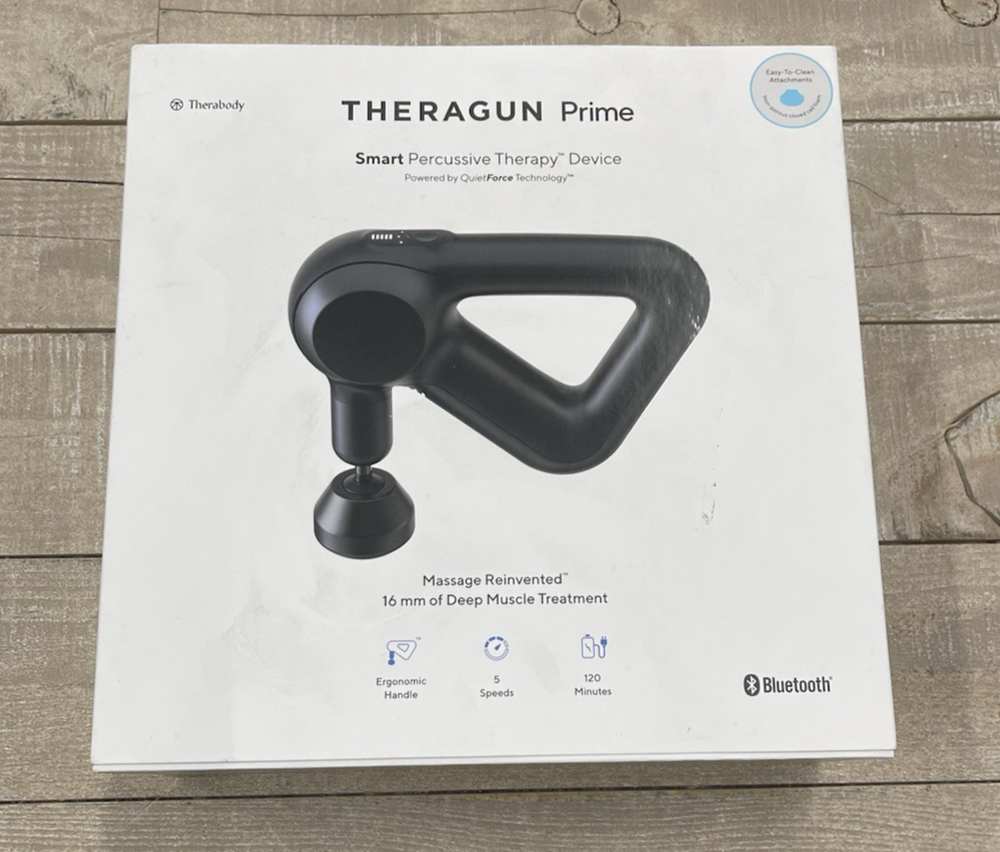 Theragun Prime Massage gun New in box 4 massage attachments -Thumb -Standard ball -Dampener -Cone Power adapter Travel pouch MSRP $319.99 Please ask any questions before purchase