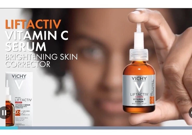 Vichy LiftActiv Vitamin C Brightening Serum for Face With 15% Pure Vitamin C NEW. New in Original Box Product Size 10 ml / .37 ounces About this item Description Vitamin C for face with hyaluronic acid to address dullness, dryness, fine lines, and uneven skin tone. Dark spot corrector and anti wrinkle serum with antioxidants. Benefits Skin brightening serum to even skin tone and texture and reduce fine lines in 10 days. Fragrance free. Suggested Use Use in the AM, squeeze applicator at base to place 4-5 drops onto cleansed skin. Use before an SPF & other serums. Vichy LiftActiv Vitamin C Serum, Brightening and Anti Aging Serum for Face with 15% Pure Vitamin C, Skin Firming and Antioxidant Facial Serum for Brightness and Moisturizing Ingredients Aqua/Water/Eau, Ascorbic Acid, Alcohol Denat., Dipropylene Glycol, Glycerin, Laureth-23, Neohesperidin Dihydrochalcone, Sodium Hydroxide, Tocopherol, Hydrolyzed Hyaluronic Acid, Pinus Pinaster Bark/Bud Extract (F.I.L. D208549/1). Clean Home Non Smoking No Pets SewroomCleardrawer 240413