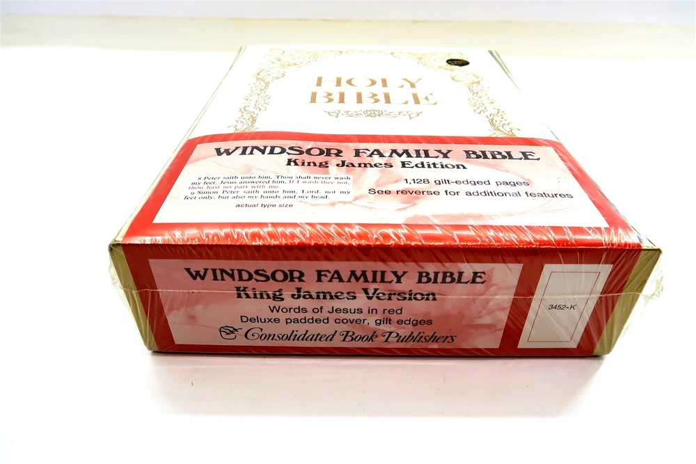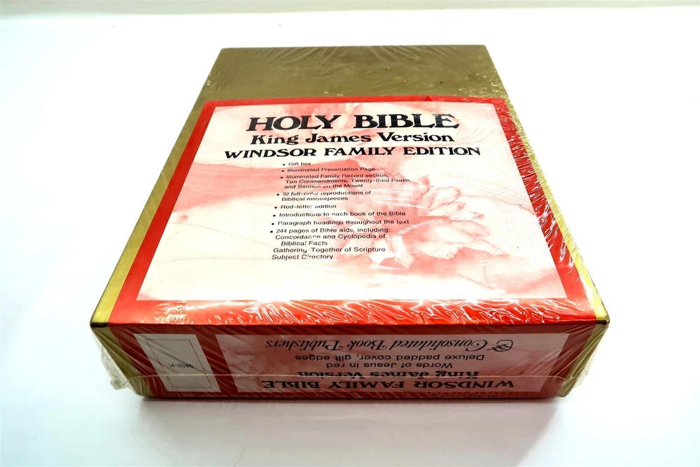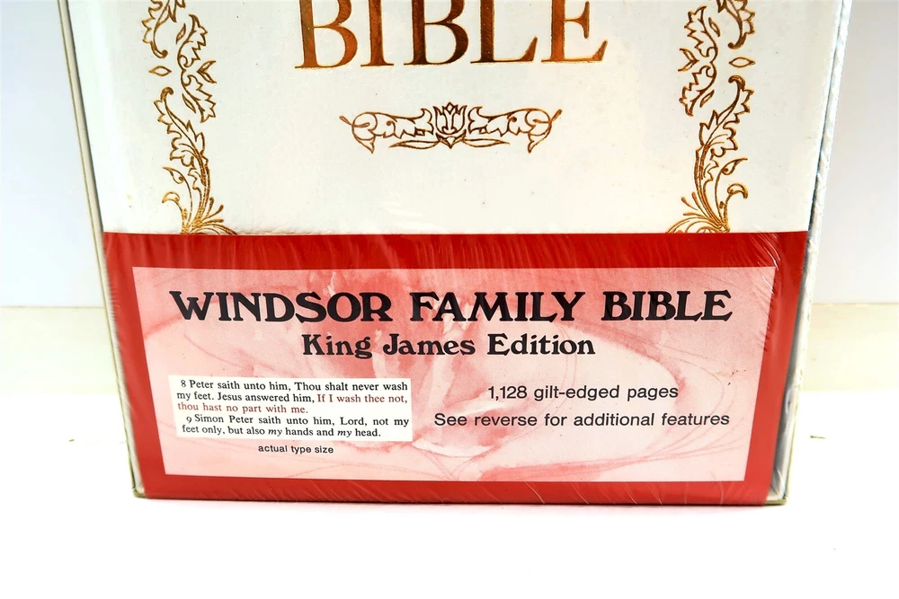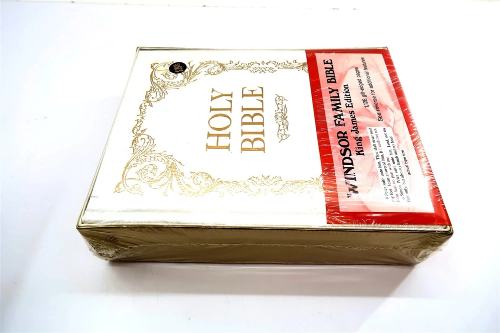 New WINDSOR FAMILY HOLY BIBLE King James Edition 1128 Gilt Pages FACTORY SEALED This eBay listing is for a vintage New Old Stock (NOS) Windsor Family Bible King James Edition that comes still factory sealed in plastic and never opened up before. This is a full sized bible at 11.5" tall, 1128 pages, 6.3 pounds and looks to be bound in leather but since it's sealed - I can't touch it to see if it's real leather or faux leather. Age is unknown but I believe it's from the early 1970's to 1980's era. Seller Location Reference - Loft/Box 300D BID IN CONFIDENCE – CHECK MY FEEDBACK! My goal is your satisfaction. I leave positive feedback right after the payment is received for all orders!! If you plan to leave anything less than positive feedback and 5 stars - please let me know so that I can work out any problems that you may have. I aim to please!! SHIPPING & HANDLING FOR US BIDDERS We ship ASAP upon payment as noted above within 1 business day 99% of the time!! We normally pack up your new treasures 2 - 3 times a day and ship using USPS and Fedex Ground so that you get your items in a timely fashion. As always - there is no charge for local pickup on any of my items!! SHIPPING AND HANDLING FOR INTERNATIONAL BIDDERS Import duties, taxes and charges are not included in the item price or shipping charges. These charges are the buyer’s responsibility. Please check with your country’s customs office to determine what these additional costs will be prior to bidding/buying.” THANK YOU AND HAVE A WONDERFUL DAY!! Powered by SixBit's eCommerce Solution
