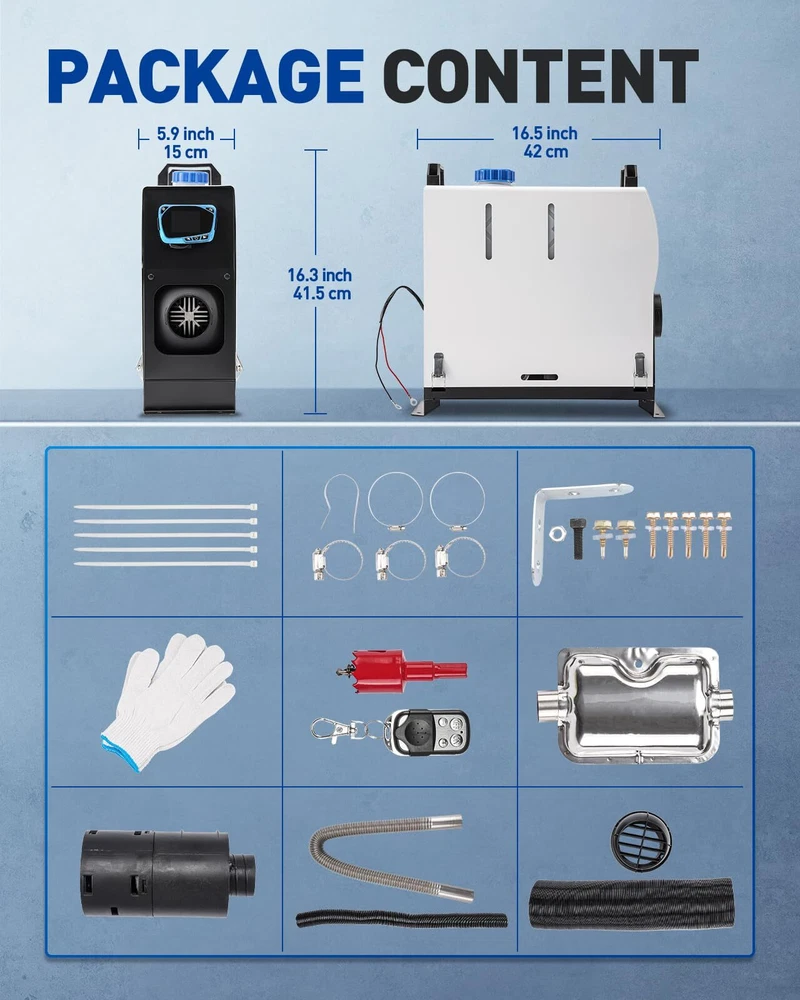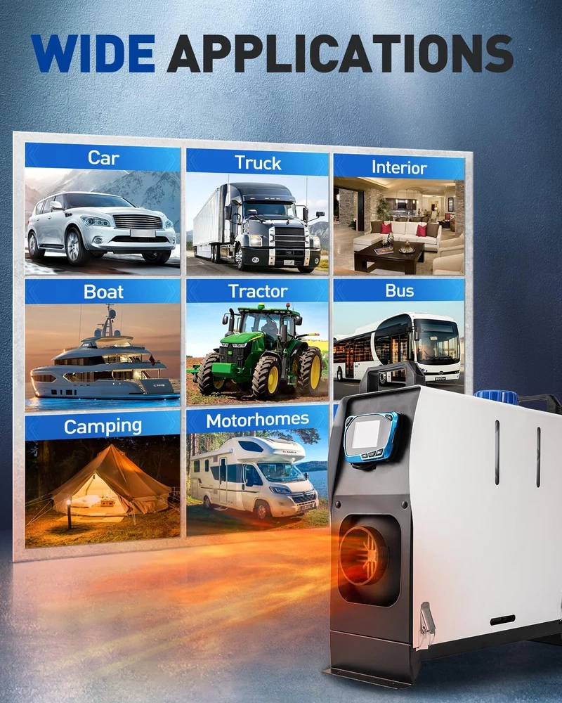 Hot Selling Radiator Replacement for 2009 2010 2011 2012-2017 Toyota Corolla 1.8L for 13106 USD64.32 Starter High Torque For 1989- 1994 1995 Ford F150 F250 4.9L 5.0L 5.8L 3205 3268 USD57.88 Starter Mini For Chevy SBC 350 400 153 Delco Hitachi 168 T 4HP 18492 High Torque USD89.99 Radiator For 2008-2017 Mitsubishi Lancer Outlander 2.0L 2.4L 3.0L TYC2979 2979 USD58.38 Floor Mats Liners for Ford Explorer 7 Seat All-Weather 2015 2016 2017 2018 2019 USD84.99 New Radiator for Honda Odyssey 2011 2012 13 14 2015 2016 2017 3.5L V6 CU13208 USD64.99 New K1 9006 HB4 LED Headlight Bulb Conversion Kit Low Beam 6000K 60W 6000LM USD14.99 5x5 to 5x5.5 Wheel Adapters 1.25" 5x127 to 5x139.7 1/2x20 Studs for Wrangler 4 USD79.53 2.5 Inch 12V Marker Lights Trailer Light 2 LED (20Pcs 10 Amber and 10 Red) USD8.99 Headlight Set Pair Headlamp For 2010 2011 2012 2013 Mazda 3 Halogen USD115.99 DESCRIPTION PAYMENT SHIPPING RETURN POLICY CONTACT US New White Diesel Air Parking Heater 12V 5KW 5L For Cars SUV Boats w/ LCD Switch Features: High comfort and low noise: The fast-heating 12 V 5 kW diesel-air heater can quickly warm up the engine and cab. Noise is also effectively reduced by fan speed control, low noise fans and fuel pumps. Enjoy a warm and quiet place on a cold winter day. Efficient fuel pumps: Our diesel heating systems are very energy efficient, with fuel consumption as low as 0.11-0.51 (L/H)/ 0.029-0.135 (Gal/H). In addition, the ECU precisely controls the injection frequency and intake volume of the fuel pump to extend its service life. LCD thermostat monitor: Through the digital LCD monitor, you can clearly see the working status of the diesel air heater. You can also pre-set the heating switch time with the timed heating function. Robust aluminum construction: The combustion chamber, bottom and cooling scale are made of sandblasted aluminum. This diesel heater is integral in design, with uniform heat dissipation and high heat resistance. Easy installation: Our floor heaters come with a complete assembly package, including key components, piping and tools. It is easy to use and flexible to install. When the vehicle is replaced, it can be disassembled and installed in a new car. Diesel vehicles and interiors: Bus heating is commonly used for cabin heating of various diesel vehicles such as cars, caravans, buses, vans, trucks, boats, etc. It is also suitable for homes, warehouses, factories, offices and other indoor areas. Two-way remote control: (1) Remote pairing process : - First move the receiving component to be coupled to the waiting pairing state. - Then press the button on the remote while confirming the build. The remote control appears in a queue for pairing interfaces. - Remote control and switch start automatic pairing process. After the code is successfully synchronized, it automatically exits the code pairing interface and displays normal working parameters. - If the code fails, it does not switch to the normal display state of the working parameters. If the remote code is not received after the timeout, the code match status automatically exits. (2) Switch the temperature control mode: When selecting the temperature control mode remotely, press on/key at the same time to switch to the automatic temperature control mode and display the temperature. Pressing the button again will switch back to manual mode. In manual mode, the temperature is manually controlled by the fuel pump frequency that controls the amount of oil. Working state setting: The working state of the heater can be adjusted at any time by remote control. The method is as follows: - Open the button: Increase the pump oil volume (manual temperature control mode) or increase the set temperature to increase the output temperature of the heater. - Lower button: Reduce pump oil (manual temperature). Adjust mode or lower the set temperature to reduce the initial temperature of the heater. Bidirectional receiver Description: (1) On/Off button: Long press the on/off button: Light up under the switch button. If it's on, it means it's on, and if it blinks, it means there's an error. - Start: Press and hold the I/O key when the operating voltage meets requirements. (2) Manual refueling: In the off state, press the on/off button continuously and quickly 5 times to start the manual pump. Package Included: As the picture show Notice: *Due to the manual measurement and different measurement methods, please allow 1-3cm deviation. *Professional installation is highly recommended *For any needs please contact us. Item Specifics Brand KAC Type Diesel Air Heater Manufacturer Part Number AUP291340 Universal Fitment YES Part Type Diesel Air Heater Fuel Diesel Complete combustion rate 100% Fuel consumption(L/h) 0.1 - 0.24 Working temperature of the heater -40℃~+50℃ Working temperature of the oil pump -40℃~+40℃ Car air conditioning type Heating Rated voltage 12V Heater power 5KW Color White Working Modes Air Condition Mode & Heater Mode Temperature Control Temperature Pre-set Facility System continuous monitoring, diagnostic system Vehicle Type cars, buses, RVs, trucks, engineering vehicles Sub-Type Diesel Heater Car Air Conditioning Typ Heating Fuel Tank 5L/1.3 gal Switch LCD UPC 679944291340 Payment Shipping Return Policy Contact Us About Warranty 1) we accepts all major credit cards via PayPal: MasterCard, Visa, American Express and Discover. 2) We will only ship to the confirmed PayPal shipping address given with the payment. Please make sure your PayPal and eBay address is correct. If not, please correct it before payment. Thank you. 3) If you want to ship to another address, please change your PayPal shipping address before you make payment. 4) To avoid initiating an unpaid item claim, please pay within 7 days. 5) Custom duties, taxes, or charges are not included in the cost you pay to us. We only ship this item to United States ! 1. We ship to your eBay address. Each package will be shipped by UPS or Fedex with tracking number. 2. Ship 