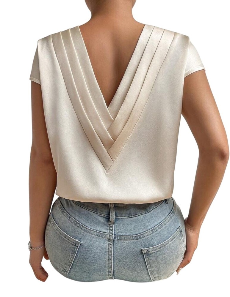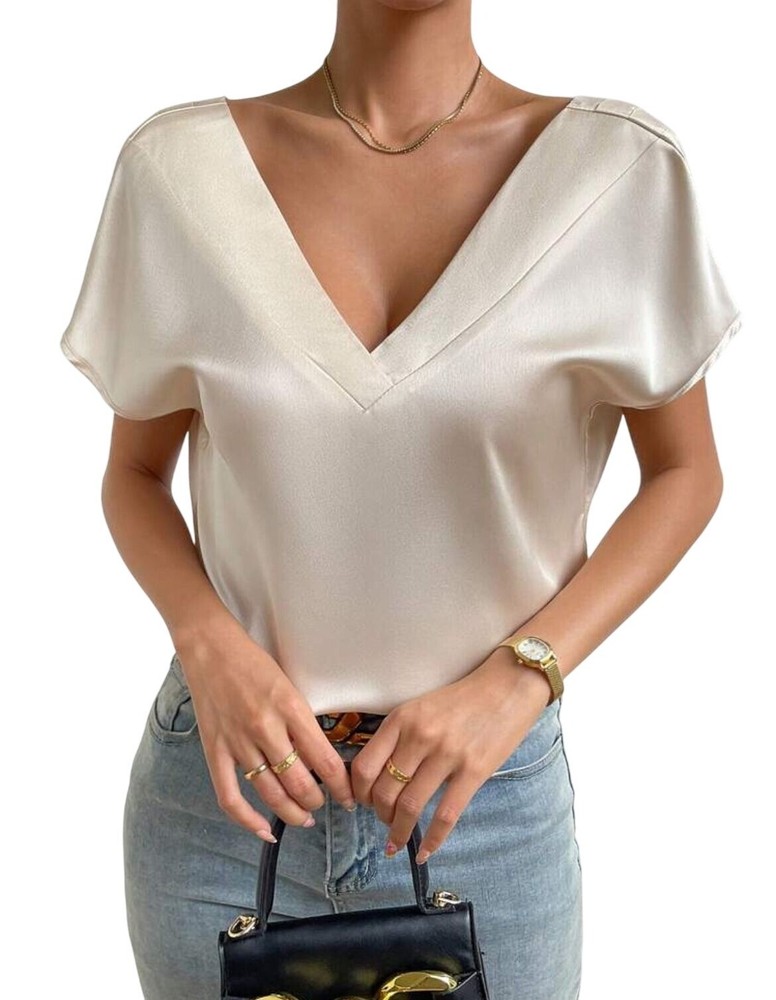 New Woman Glamours Champagne V Neck Blouse Batwing Sleeve Exude elegance with this Glamour's Champagne V Neck Blouse. The batwing sleeves and plunging neckline add a touch of sophistication, perfect for any occasion. • V Neckline for a flattering silhouette • Batwing sleeves for a unique style • Champagne color for a touch of elegance • Suitable for any occasion