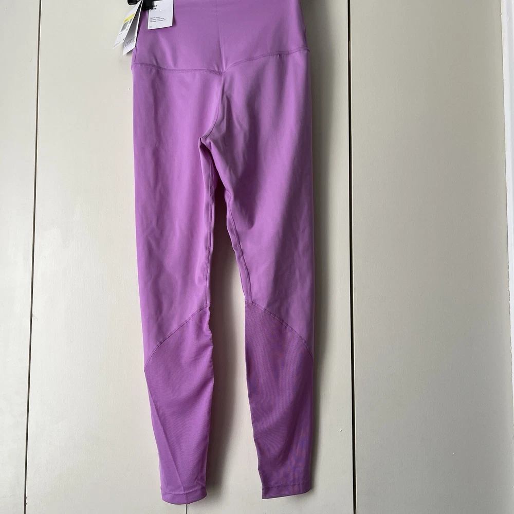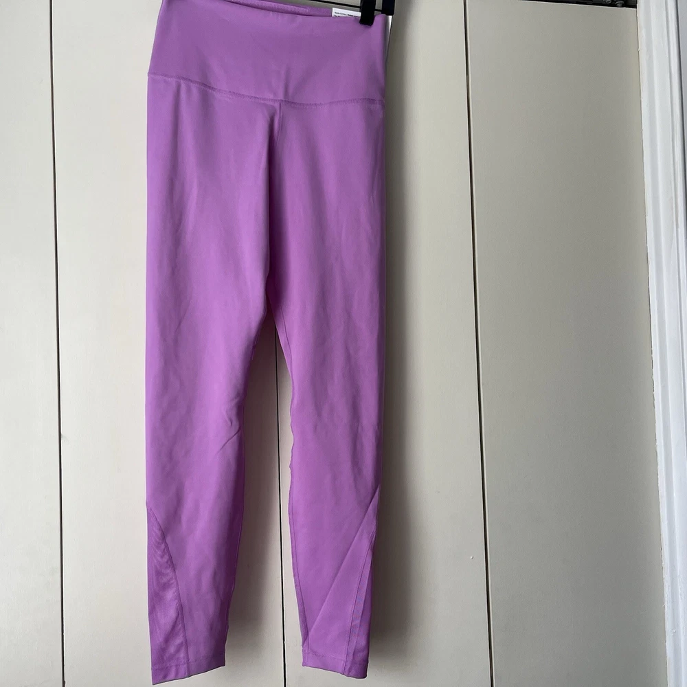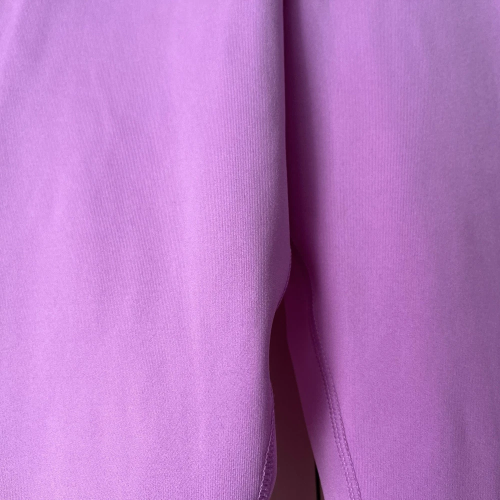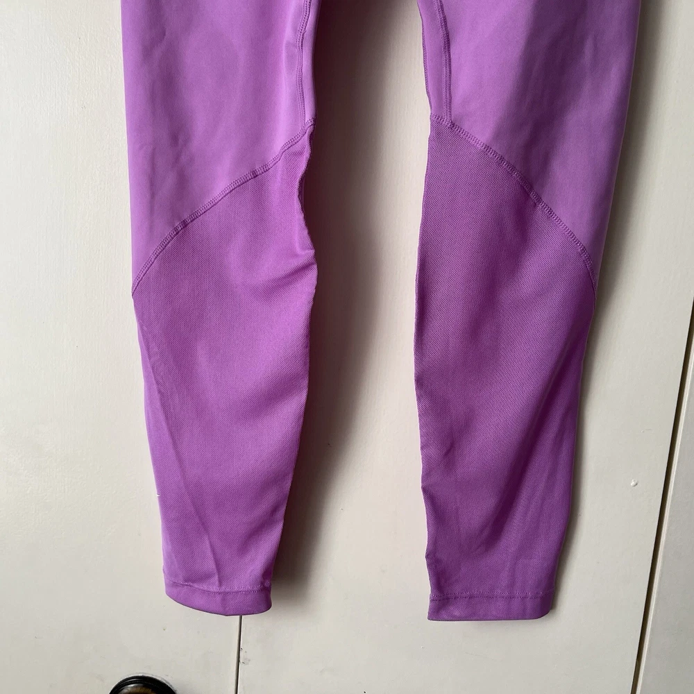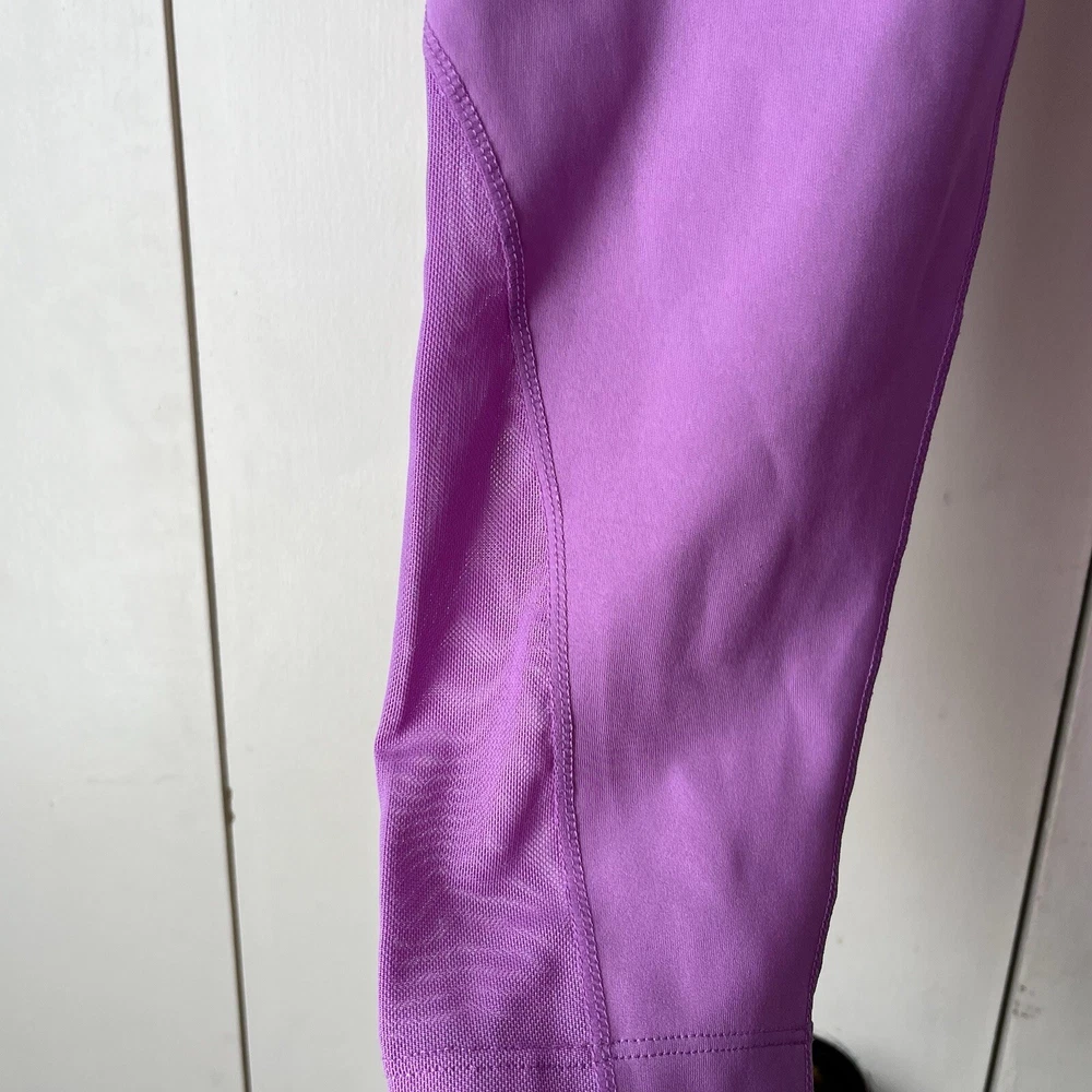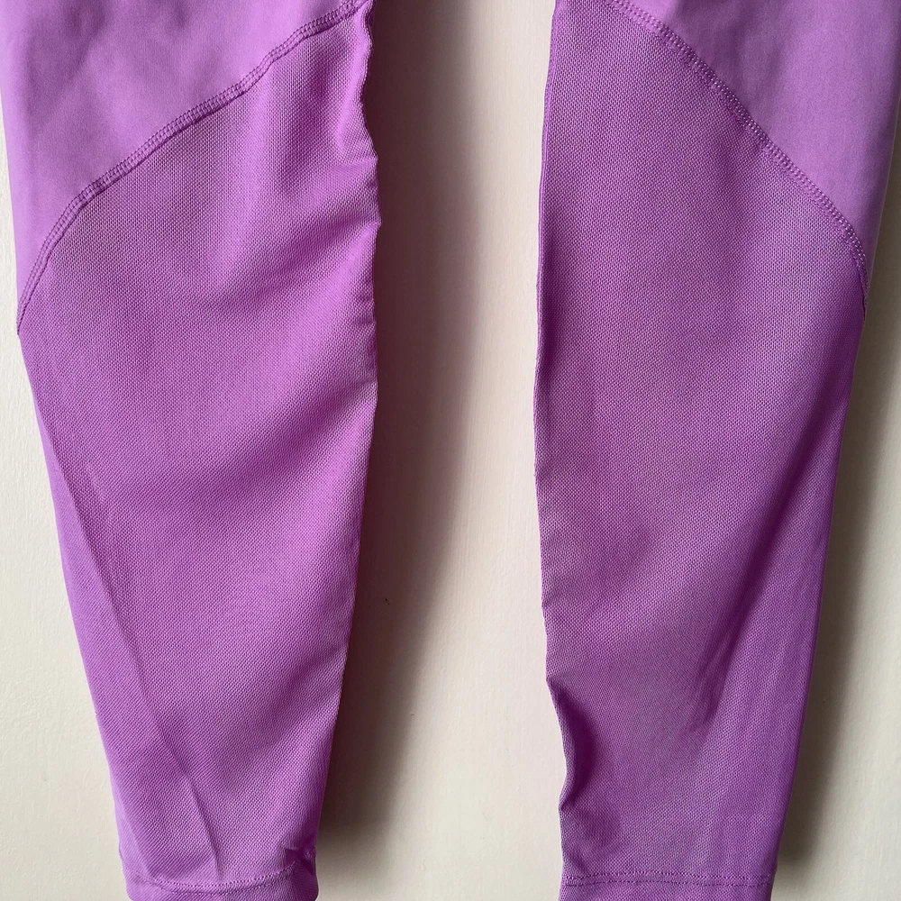 New Material body 79% polyester 21% spandex Mesh 81% polyester 19% spandex Mesh in both legs Moves sweat away Color light purple/ pink