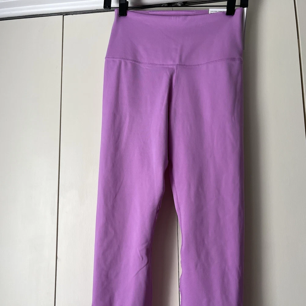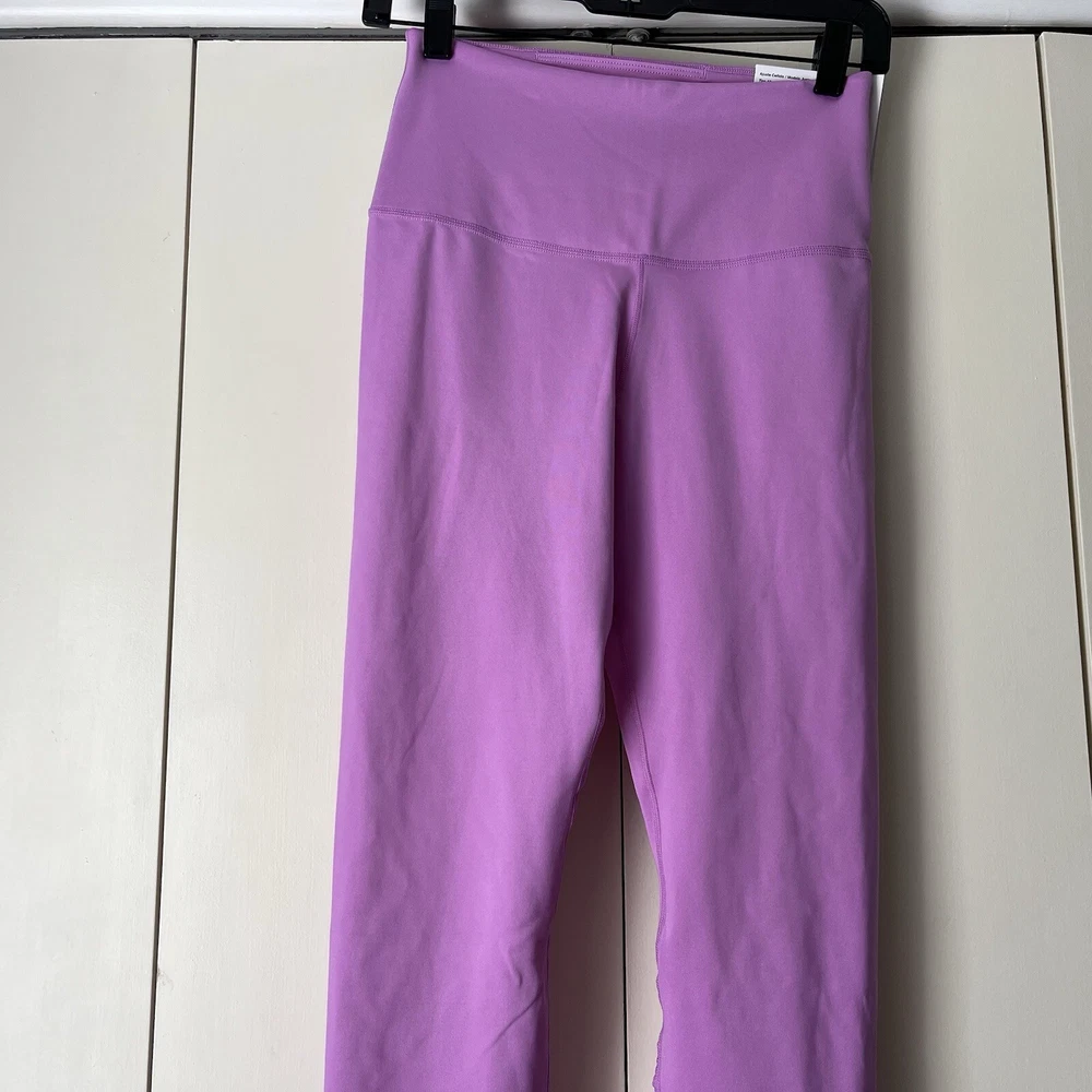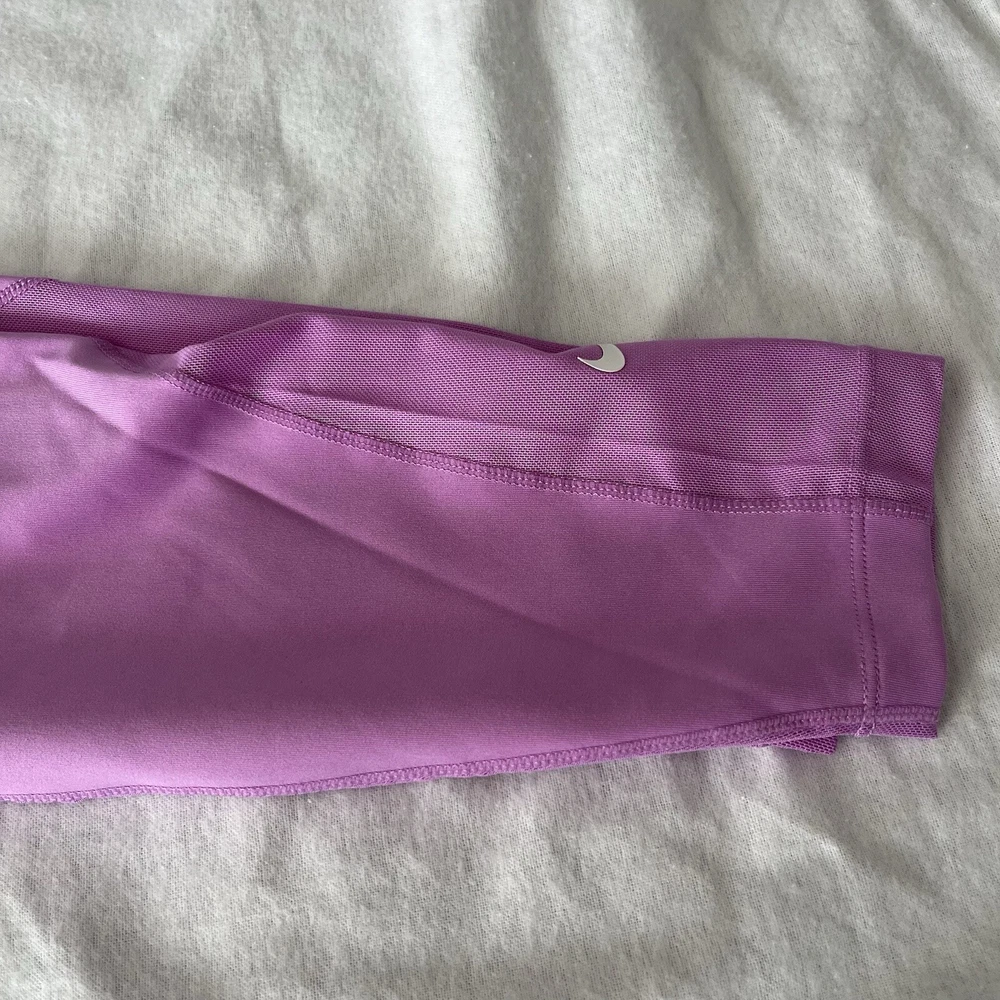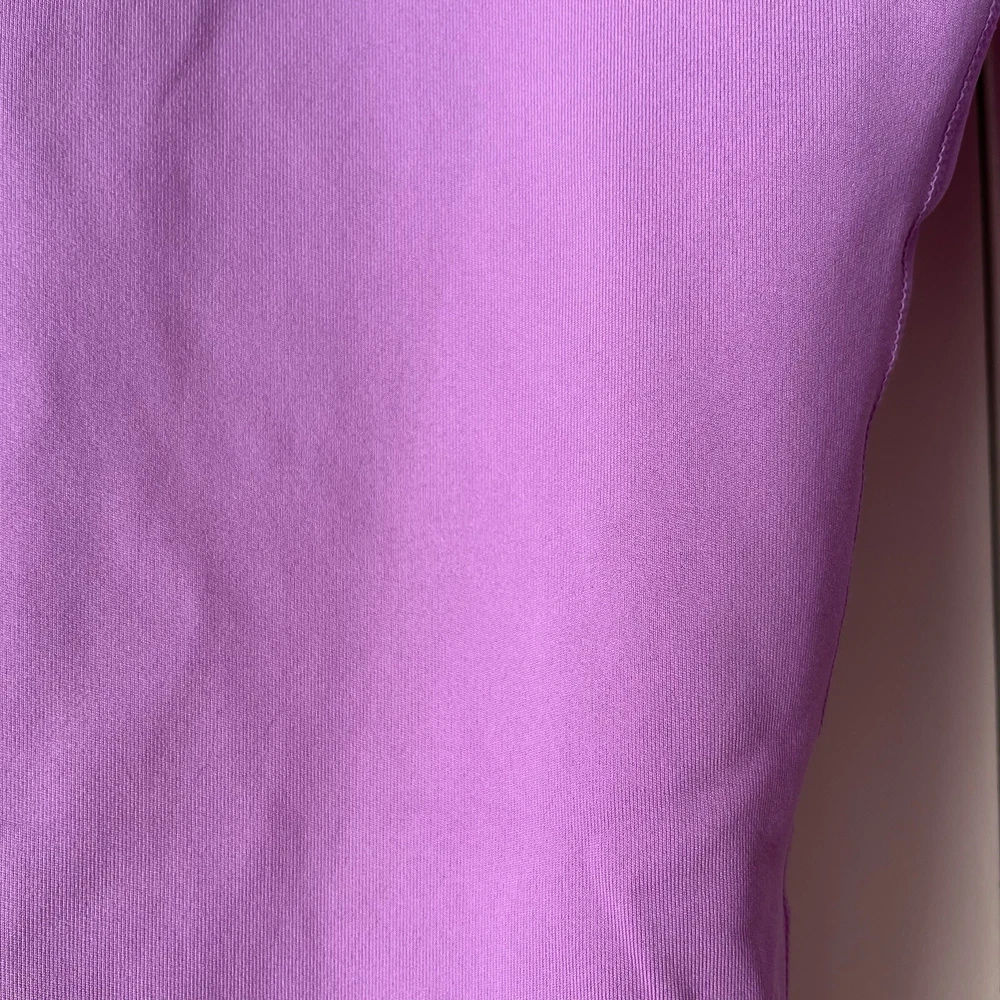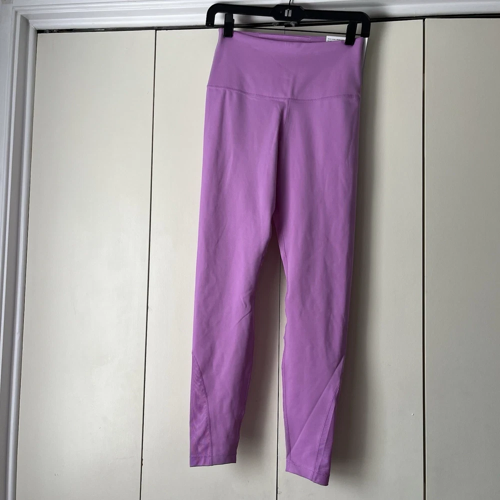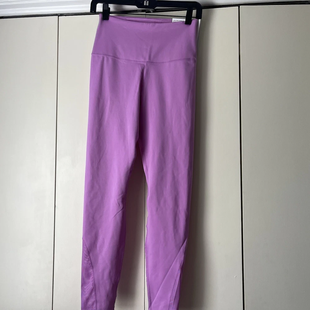 New Material body 79% polyester 21% spandex Mesh 81% polyester 19% spandex Mesh in both legs Moves sweat away Color light purple/ pink