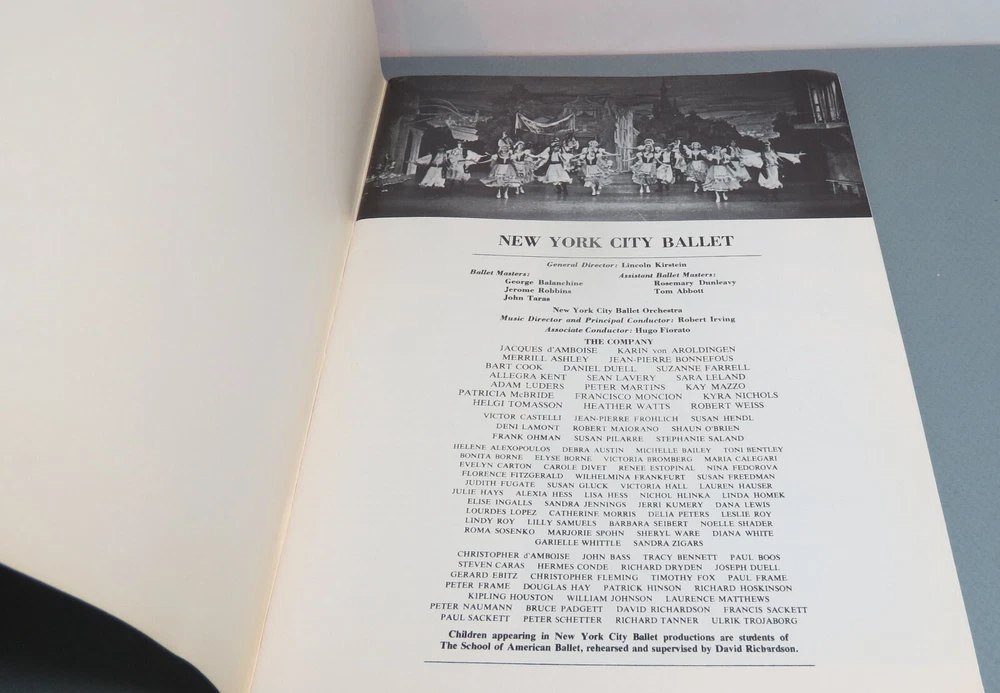 This souvenir program from the New York Ballet's 1975 performance features stunning black and white photographs by Henri Cartier-Bresson and choreography by the legendary Jerome Robbins. The program showcases the beauty of classical dance and the talent of the performers. It is a rare and valuable addition to any music or entertainment memorabilia collection, and a must-have for fans of ballet and the arts. The item is an original piece from the United States and is perfect for those who appreciate the history and artistry of classical dance.