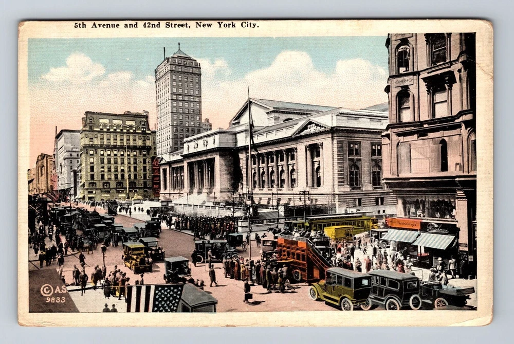 New York City NY, 5th Avenue & 42nd Street, Traffic, Souvenir, Vintage Postcard