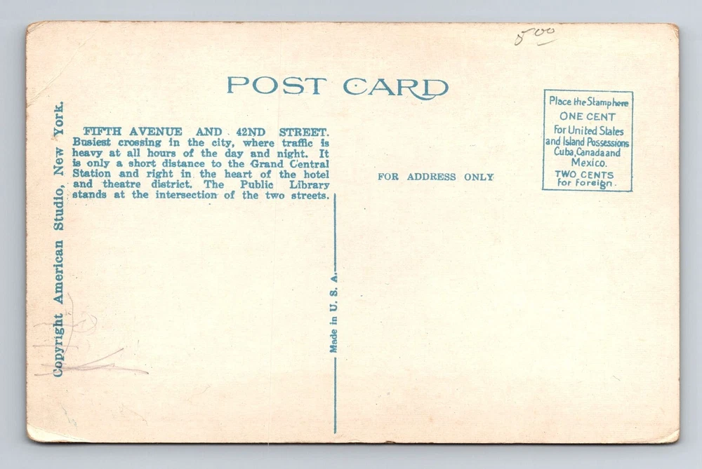 Unit of Sale: Single Unit Country: USA Theme: Cities & Towns City: New York City Era: Vintage Region: New York Size: Standard (5.5 x 3.5 in) Original/Licensed Reprint: Original Type: Printed (Lithograph) Material: Paper Postage Condition: Unposted Subject: Cities & Towns Country/Region of Manufacture: Unknown