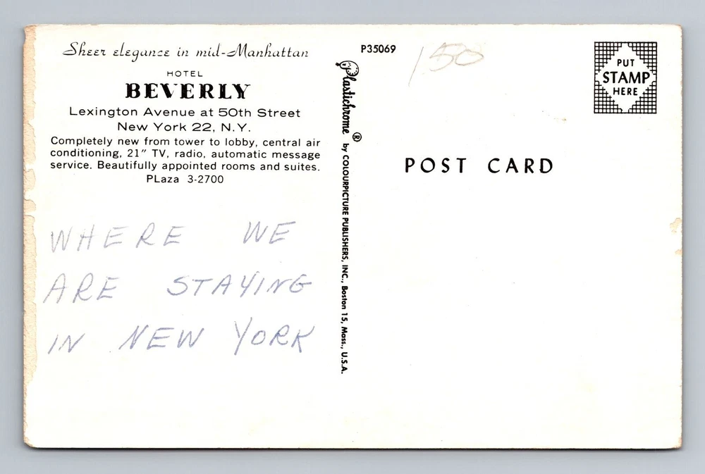 New York City NY, Hotel Beverly, Souvenir, Vintage Postcard