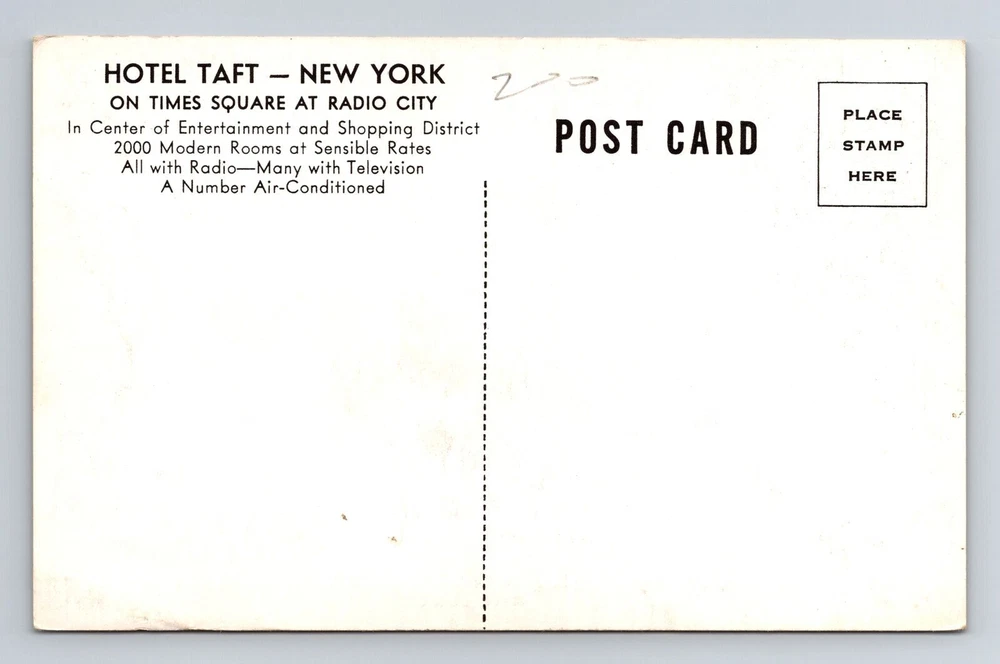 New York City NY, Hotel Taft, Souvenir, Antique, Vintage Postcard