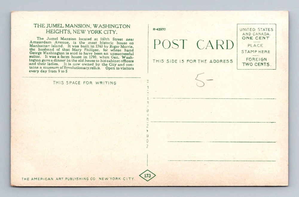 New York City NY, The Jumel Mansion Vintage Souvenir Postcard