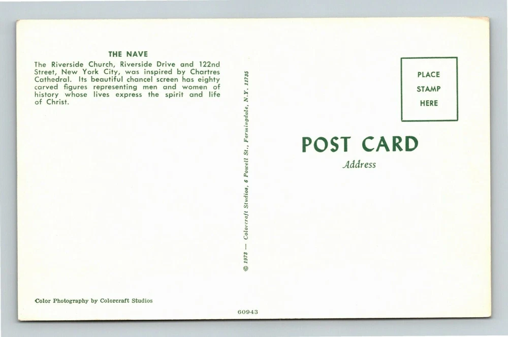 New York City NY,, The Nave The Riverside Church Vintage Souvenir Postcard
