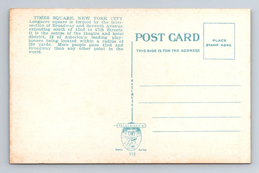 New York City NY, Times Square, Souvenir, Antique, Vintage Postcard