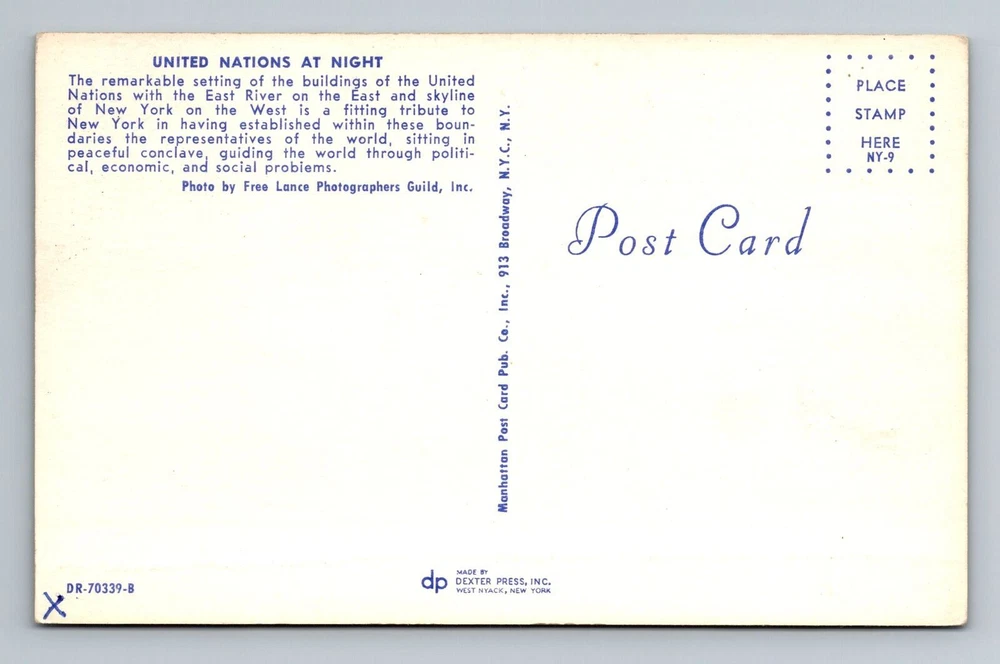 New York City NY,, United Nations At Night Vintage Souvenir Postcard