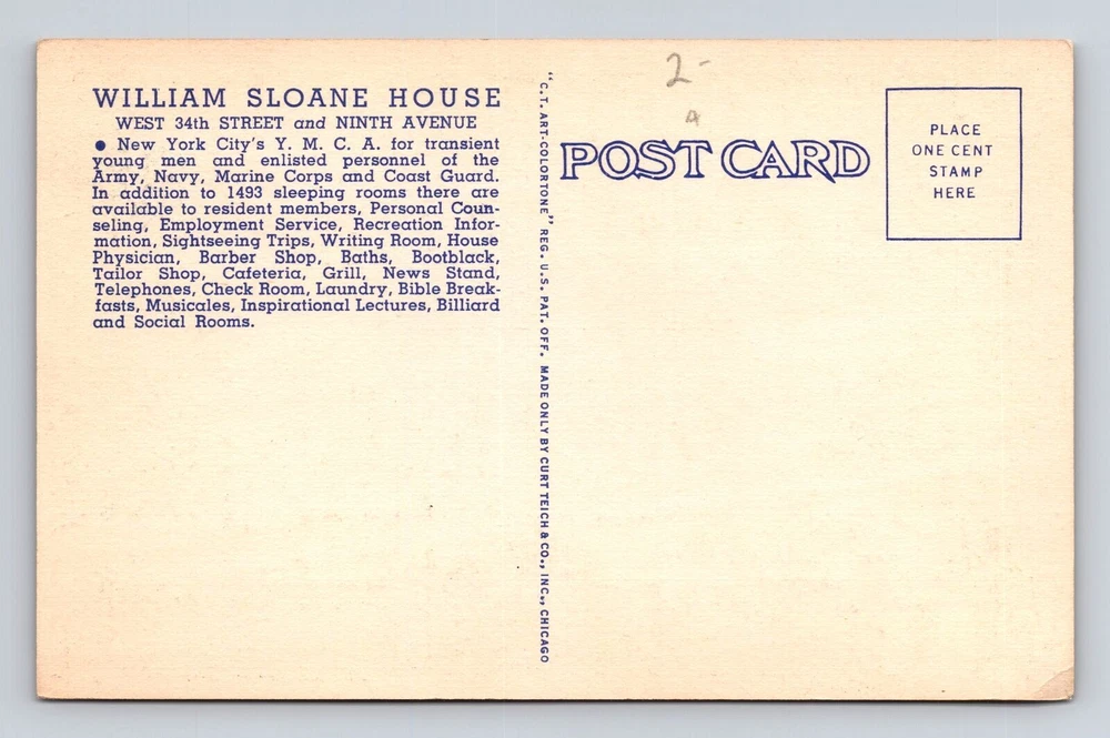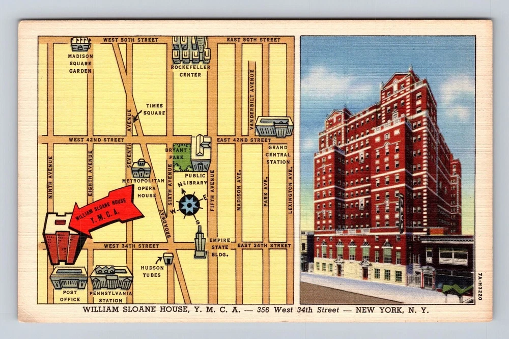 New York City NY, William Sloane House Advertising, Vintage Souvenir Postcard