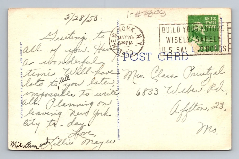 Postage Condition: Posted City: New York City Subject: Cities & Towns Country/Region of Manufacture: Unknown Country: USA Theme: Cities & Towns Era: Vintage Region: New York Size: Standard (5.5 x 3.5 in) Material: Paper Type: Printed (Lithograph) Original/Licensed Reprint: Original Unit of Sale: Single Unit