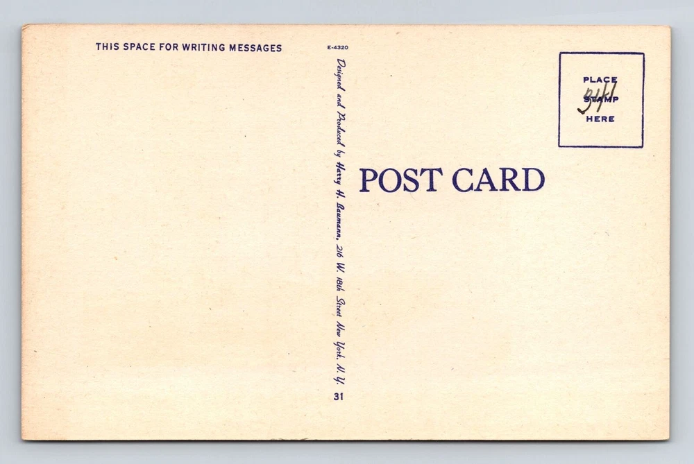 Greetings and Salutations! Welcome to The Vintage Postcard Company With Our Fully Stocked e B a y Store Postcard Size: Standard Vintage 3 1/2 by 5 1/2 (Unless Otherwise Noted in Title) USE THE EBAY PHOTO MAGNIFIER Examine photos carefully for condition and detail. Shipping & Handling USA : FREE USPS First Class Letter International : $3.00 USPS International First Class Letter Ø Postcards are mailed in protective plastic sleeves. Ø Placed inside a sturdy white 16pt cardstock photo mailer. Ø A DO NOT BEND sticker is applied or printed. Ø We aim to ship within 24-48 hours of payment, Monday through Friday. Ø Postcards with a value under $20 are mailed USPS First Class Letter. Ø Postcards with a value over $20 are mailed USPS Ground Advantage. In a bubble mailer and in a hard plastic top loader. Ø Please allow 7-10 Days for your postcard to arrive. 3-4 weeks Internationally We do our best to answer any questions or correct any problems should they arise within 24 Hours. Your Support Means the World to Us. Thank You for Choosing Our Small Business!