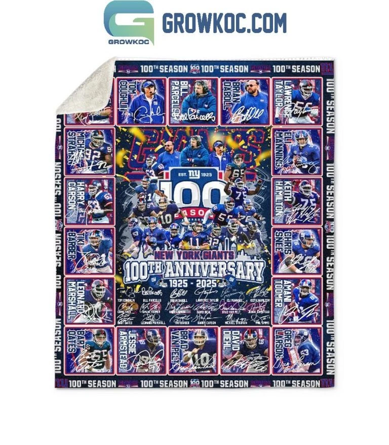 New York Giants 100th Anniversary 1925 2025 Sherpa Blanket Quilt