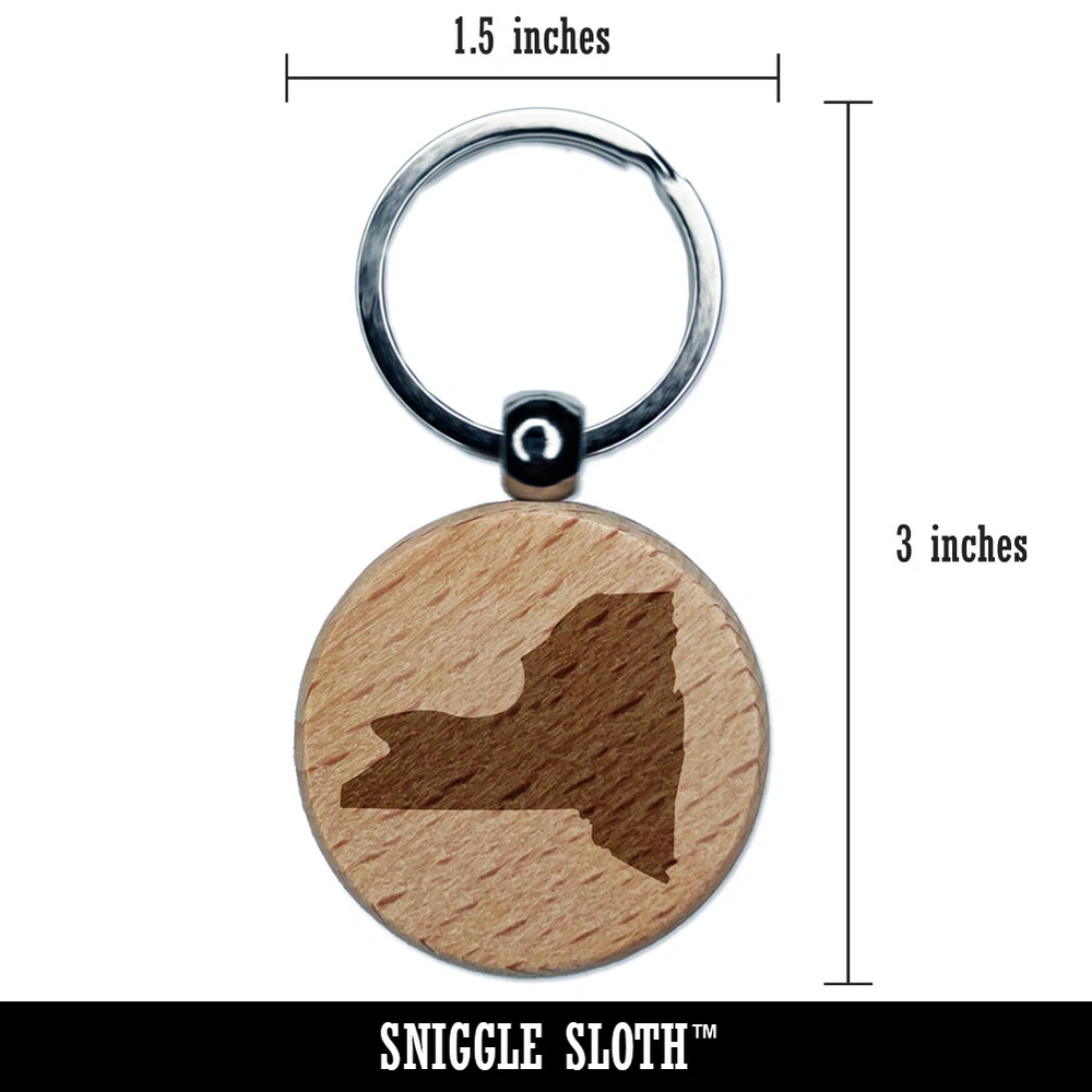 New York State Silhouette Engraved Wood Round Keychain Tag Charm