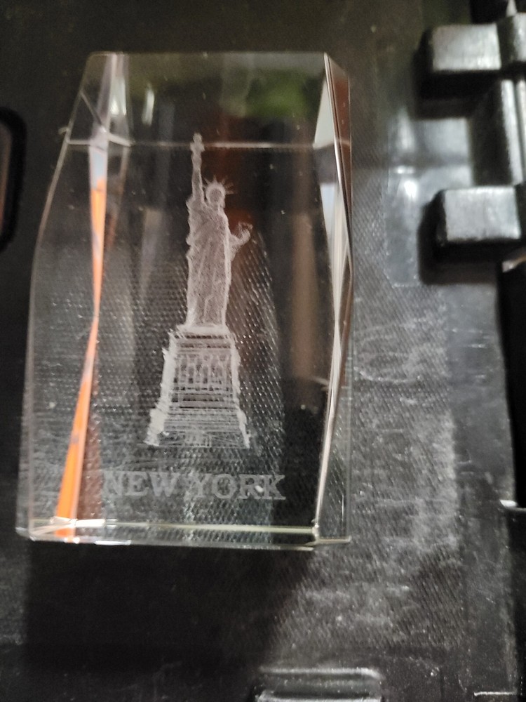 This handmade paperweight features a 3D laser-etched design of the Statue of Liberty in New York, encapsulated in clear glass crystal. The intricate detailing of the iconic statue is displayed beautifully, making it a unique and decorative collectible piece. Perfect for adding a touch of artistry and patriotism to any space, this New York Statue of Liberty paperweight would make a great addition to any collection or a thoughtful gift for a lover of American landmarks.