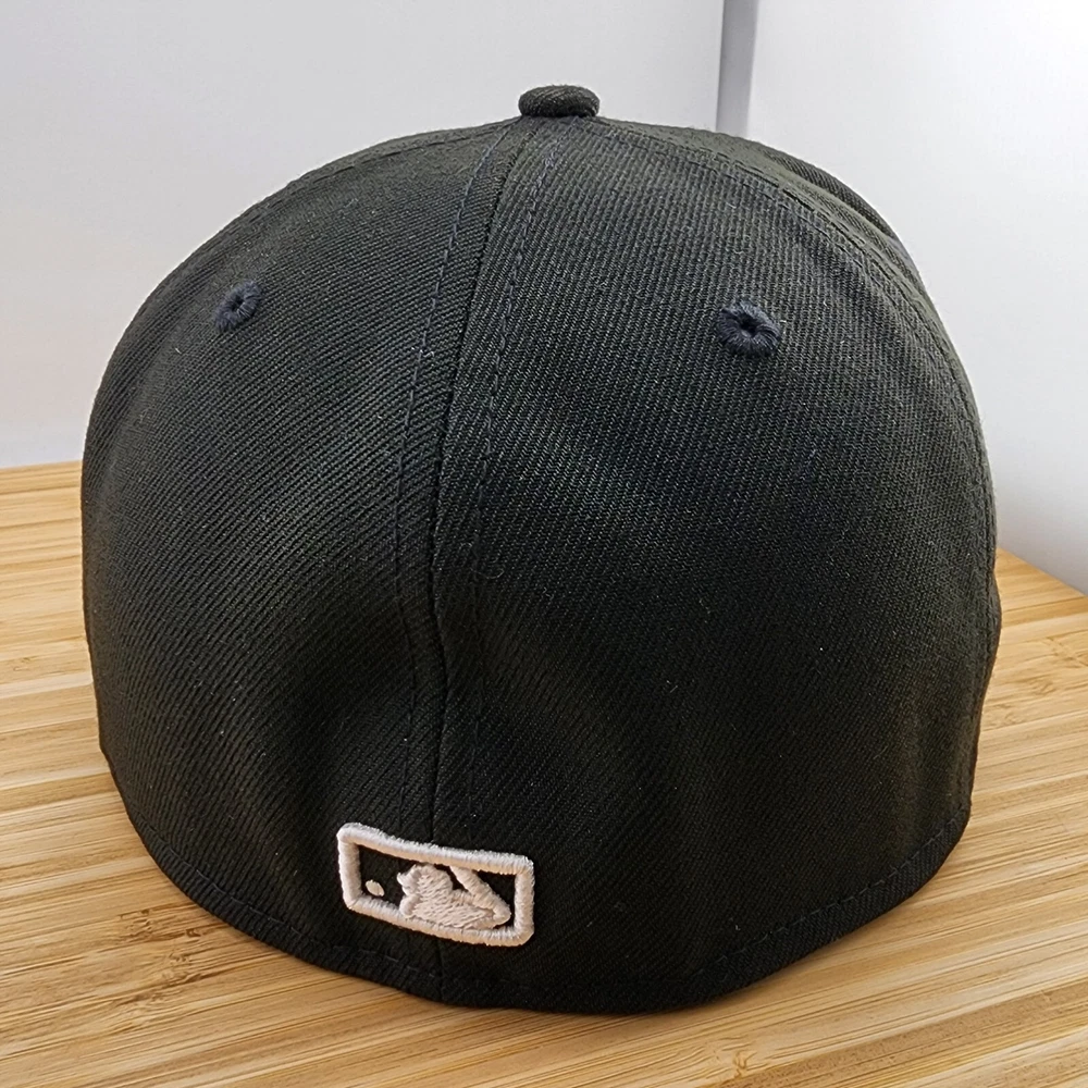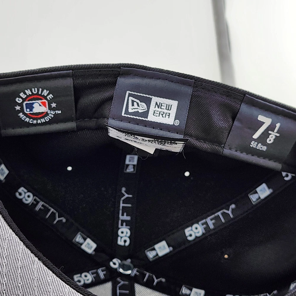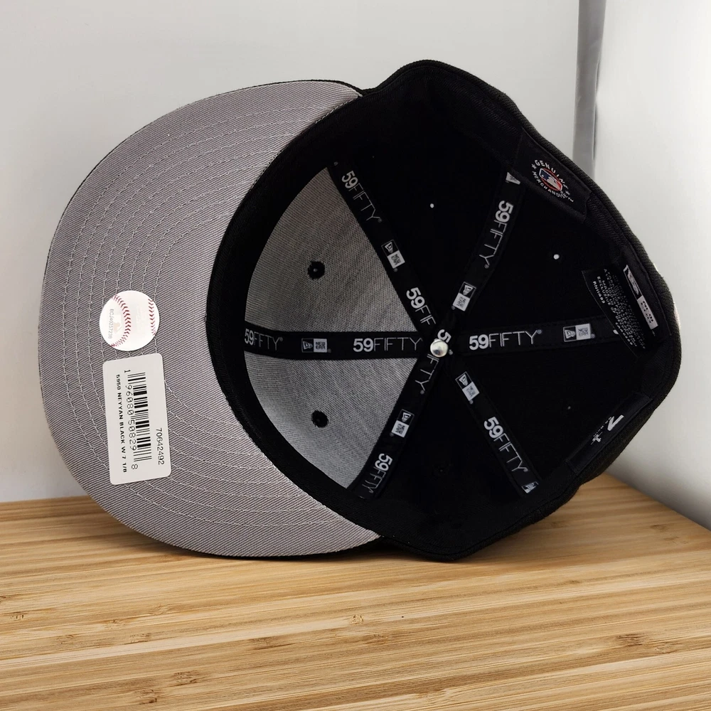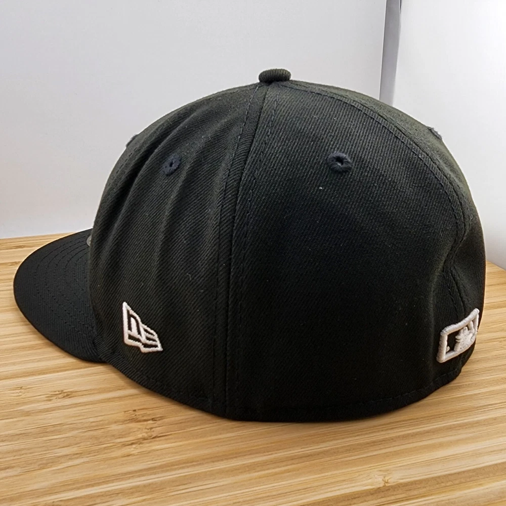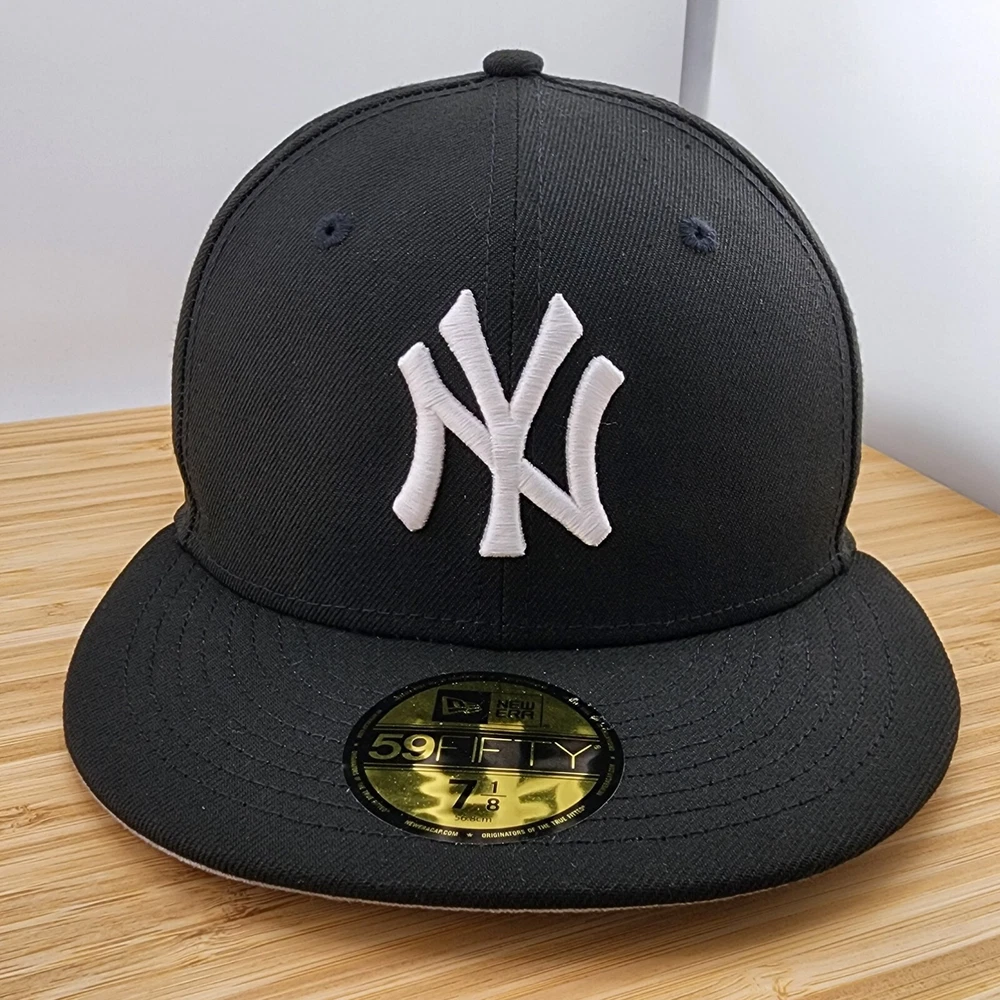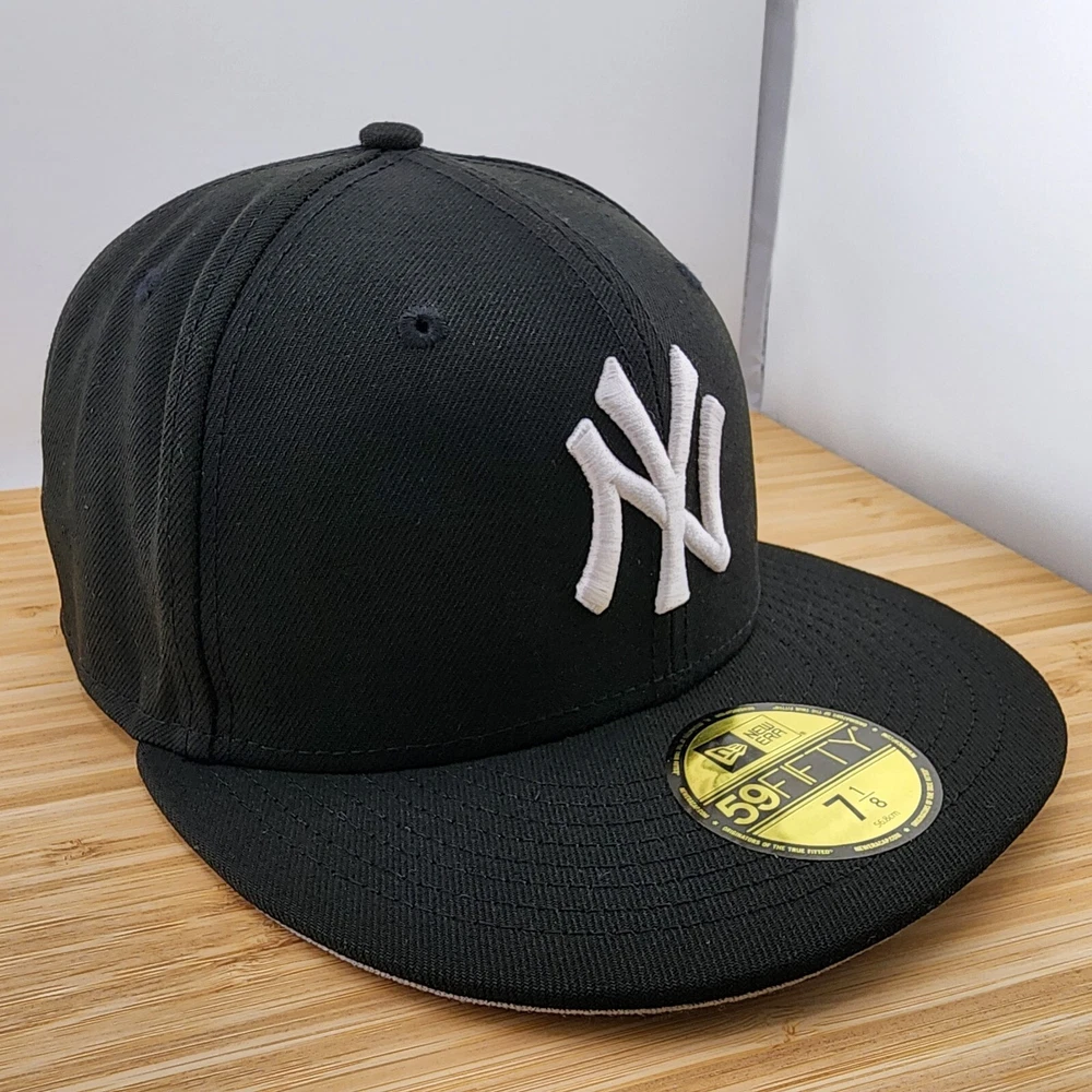 Show off your love for the New York Yankees with this stylish fitted hat from New Era. The black cap features a white logo embroidered on the front, making it the perfect accessory for any sports fan. Made from high-quality polyester material, this cap is designed to last and provide comfort for all-day wear. It's available in size 7 1/8 and is suitable for men. Whether you're going to a game or just running errands, this cap is a must-have addition to your collection.