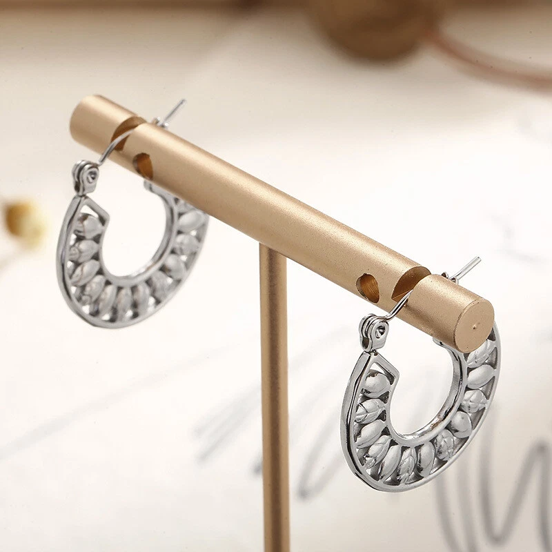 New round hollow willow leaves and women's titanium steel earrings