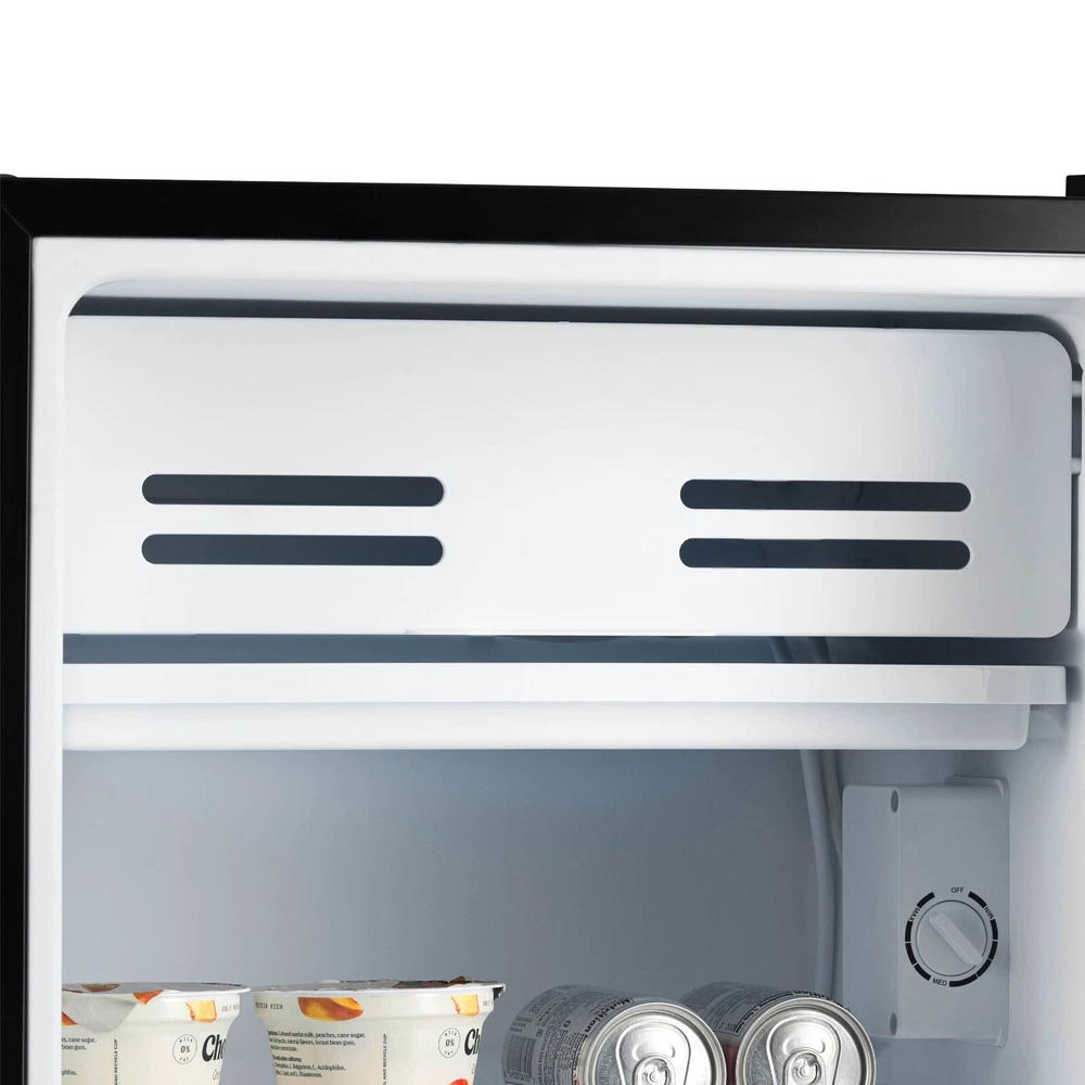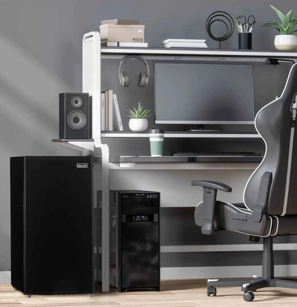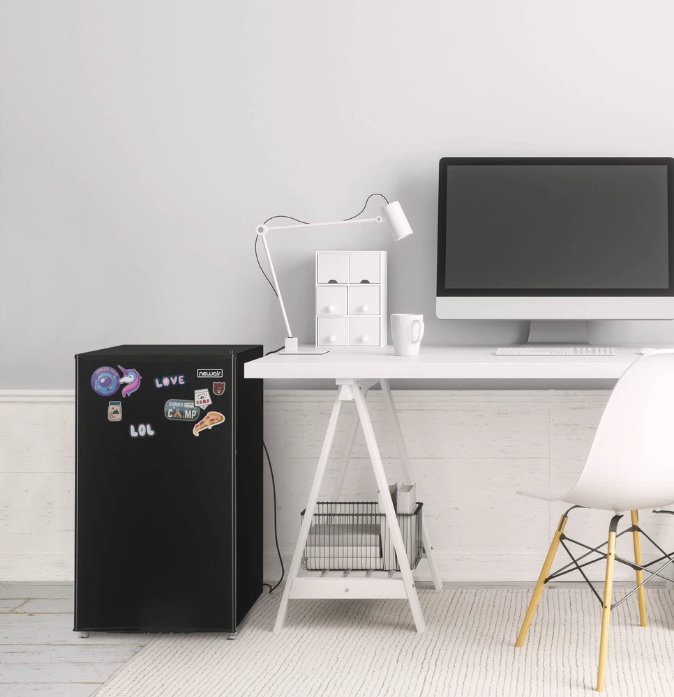 Looking for a personal fridge to hold all your favorite drinks and snacks? The Newair Compact Refrigerator provides fits anywhere you want the convenience of fresh food and cold drinks. The compact yet spacious design makes it the ideal dorm room fridge or accessory appliance for your game room. This freestanding mini fridge with freezer compartment also lets you customize storage with adjustable shelves, a can dispenser, and space for a two-liter bottle. Quiet and easy to maintain, this little fridge packs a big punch. 1. Compact Footprint, Spacious Interior: The Newair Small Refrigerator with Freezer has 3.3 cubic feet of cold storage for drinks, snacks and grocery staples. It features a single door to maximize interior space. At just over 18 inches wide and 33 inches high, this fridge fits anywhere, making it the best fridge for van life or singles just starting out. 2. A Fridge You Can Place Anywhere: The Newair Compact Refrigerator doesn't require cabinetry or special location prep, so it works anywhere you want to have cold drinks and snacks on hand. Its finished sides look great anywhere, and the reversible door lets you choose which way it opens for design versatility in your bedroom, dorm room or RV. 3. Customizable Interior Organization: With adjustable shelves, a can dispenser and a designated spot for a two-liter soda bottle, you have the freedom to add anything you like to your grocery list. There's also a freezer compartment for extra chilling and an adjustable thermostat to keep everything at your preferred temperature. What more could you ask for in a dorm or RV fridge? 4. Energy Star Certified: This Energy Star Certified mini fridge uses far less electricity than a standard refrigerator, helping you reduce your carbon footprint - and your power bills. The efficient, quiet compressor won't interrupt your conversation or your sleep, so it's perfect for one-room living. Manual defrosting is easy with the included ice scraper.