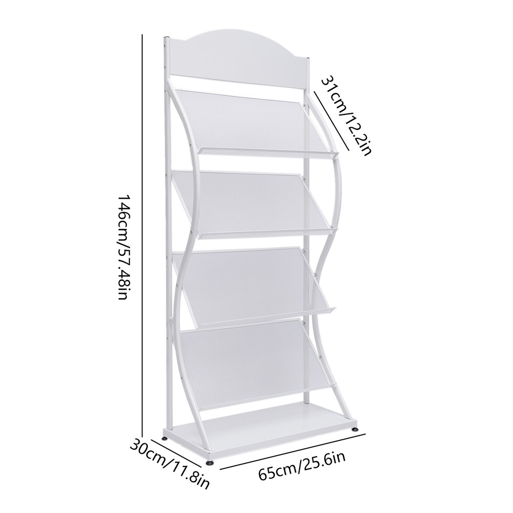 Newspaper Rack Magazine Stand Literature Holder Book Magazine Display 4 Layers Description Description Are You Still Leaving Impurities and Journals Cluttered on Your Desk? Do You Look Forward to a Sleek, Solid, Large-capacity Floor-standing Magazine Rack to Help You Organize Your Magazines and Periodicals? Then Please Do Not Miss This Fashionable and Practical Floor-standing Magazine Rack. with This Floor-standing Magazine Rack, Your Office, Study, Living Room, and Bookstore Will Be Tidier! Key Features Sturdy and Durable : the Floor-standing Magazine Rack Is Made of High-quality Iron After Superb Welding, Which Is Very Sturdy and Durable. Large Capacity : the Four-layer Structure of the Floor-standing Magazine Rack Provides You with Enough Storage Space. Each Shelf Can Hold 2 A4 Manuals Side by Side at the Same Time. the Longer and Wider Shelves Can Hold up to 16 A4 Impurities per Tier. Excellent Weight-bearing Capacity : the Floor-standing Magazine Rack Thickened Iron Tube Provides a Maximum Weight-bearing Capacity of 33.06 Pounds per Tier. the Excellent Load-bearing Capacity Allows You to Use It with Peace of Mind. Convenient Access : the Floor Magazine Rack's Open Design and Proper Spacing Allow You to Get the Magazines You Want to Read at Your Fingertips. Display Function : the Floor-standing Magazine Rack's Tilted Shelves Allow Customers to Clearly See the Magazine Covers, Promoting Their Desire to Buy. Stylish Appearance : the Floor-standing Magazine Rack's Smooth S-shaped Lines and Elegant White Color Create a Stylish yet Classic Style. Such an Attractive Floor-standing Magazine Rack Is a Great Decoration for Any Place. Superb Craftsmanship : the Surface of the Floor-standing Magazine Rack Adopts Superb Sandblasting and Plastic Spraying Processes. the Sandblasting Brings a Smooth and Delicate Surface to It. Plastic Blasting Makes the Floor-standing Magazine Rack Wear-resistant and Corrosion-resistant . Strong Stability : the Unique S-shaped Iron Tube and Thickened Support bar of the Floor-standing Magazine Rack Provides Excellent Stability, Making It Solid and Non-shaky . Details Grid Design : Floor-standing Magazine Rack Shelves with Breathable Grid Design to Place Books, and Magazines Mold. and the Grid Design Can Increase the Friction with the Book so That It Is Not Easy to Fall. Nylon Anti-slip Feet : the Bottom Anti-slip Feet Are Made of Nylon, Which Can Prevent Slipping. and Nylon Cage Anti-slip Feet Can Protect the Floor from Scratches. Base : the Thickened Base Increases Both the Stability of the Floor-standing Magazine Rack and Its Placement Area. Advertising Board : the Top Billboard Can Be Diy According to Demand, Which Not Only Exercises the Hands-on Ability but Also Increases the Decorative Nature of the Floor-standing Magazine Rack. Galvanized Iron Screws : the Screws Are Made of Galvanized Iron and Are Made to Take into Account Laminations. Electroplated Screws Are More Durable and Can Extend the Life of the Floor-standing Magazine Rack. Application The Floor-standing Magazine Rack Is Suitable for Displaying and Storing Books, Impurities, Newspapers, Periodicals, Etc. Its Beautiful Shape and Large Capacity Make It Suitable for Homes, Bookstores, Libraries, Schools, Etc. Specification Model: 209 Material: Iron, Galvanized Iron Color: White Style: Minimalist, Industrial Mounting Type: Floor-standing Number of Layers: 4 Surface Treatment: Sandblasting, Spraying Process Single Shelf Capacity: 15kg/33.06lbs Gross Weight: 5kg/11.02lbs Package Size: 142*34*7cm/55.90*13.38*2.75in Product Size: 65*30*146cm/25.59*11.81*57.48in Advertising Board Size: 60.5*18cm/23.81*7.08in Single Board Size: 60.5*31cm/23.81*12.20in Installation Unscrew the Screws at Both Ends of the Round Tube. Fix the Round Tube Between the Left and Right Supports. Fix the Billboard Between the Left and Right Supports. Fix the Grid Layer in Turn Between the Left and Right Brackets to Complete the Installation. Package Included 1*Base Plates 2*Stands 4*Mesh Plates 1*Advertising Board All Accessories Required for Installation Notes Please Allow the Slight Color Difference Caused by the Shooting Light and 1-3cm Error Due to Manual Measurement. Please Make Sure You Do Not Mind Before You Order. Payment Delivery details Terms of sales About us Contact us Payment We accept ebay payment 。 Fees such as import duties, taxes are not included in the item price or shipping costs. These charges are the buyer's responsibility. Delivery details Shipping: 2-9 working days to: USA Terms of sales We maintain high standards of excellence and strive for hundred percent customer satisfaction. Feedback is very important to us. We hope that you contact us immediately before you give neutral or negative feedback, so that we can address your concerns. It is impossible to address issues if we do not know about them! About us Your satis faction is our ultimate goal. We work hard to earn your trust and future business. Our certified technicians have tested each item before shipping. The unit comes with 1 year limited warranty on all manufacturing defects. a) If you receive a defective item, you may return it or ask for a discount. Please contact us within 14 days after you receive the package. b) What you returned must be intact and in its original packaging as re? u. Customer is responsible for shipping costs of the returned item. c) We will cover the cost of shipping back t with the shipping rate indicated in the registration page. We will send you a new unit or refund the full payment you paid. Thank you. Contact us Business Hour Business Hour: Monday To Friday: 8:30 AM to 5:00 PM (Beijing China time) Due to time zones, our reply to your questions may not be immediately. But within above working time, we will reply your email within 24 hours. If it's non-workdays, please kindly be patient and wait till Monday. Please contact us with ebay message. Please feel free to contact us if you have any questions. Monday To Friday: 8:30 AM