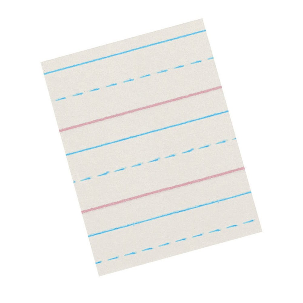 Clean White newsprint paper printed on both sides with a red baseline and a dotted blue midline, making it easy for students to find the headline quickly and easily. It's also great for tracking students' handwriting progress over time, and helps build a solid foundation for students to write legibly and communicate effectively through writing. Recyclable. Ruled 1/2" (short way), 1/4" dotted midline, 1/4" skip space. For 2. Recyclable. Measures 8" x 10.5". Each pack includes 500 sheets. Sold as 3 packs for a total of 1500 sheets. Conforms to 2 handwriting program 1/2" ruled on both sides with 1/4" blue dotted midline, red baseline and 1/4" skip space Each package contains 500 sheets that measure 8" x 10-1/2" ruled the short way
