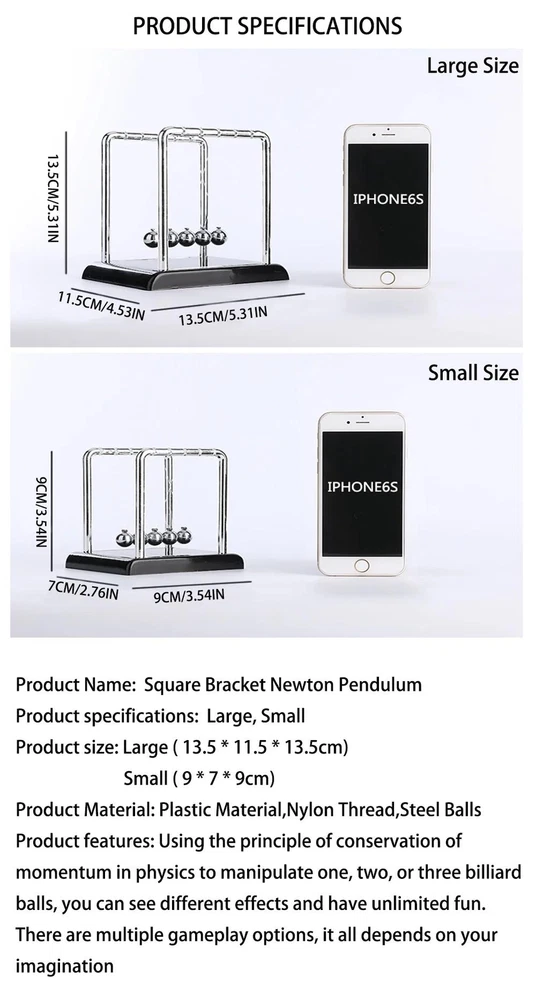 Free and fast shipping, Shipping time takes up to 1-7 Business Days 30 DAYS RETURN EASY PAYMENT via Credit Card, Google Pay, PayPal, PayPal Credit... Newton's Cradle Balance Steel Ball Desk Toy Gift Gravity Pendulum Teaching Suppl Specifications: Material: High-quality Steel Design and Style: Classic Newton's Cradle with Balance Steel Balls Usage and Purpose: Educational Tool, Office Decoration, Desk Toy Performance and Property: Demonstrates the Principle of Conservation of Momentum Parts and Accessories: Includes a set of 5 Balance Steel BallsSize: Compact and Portable for Desktop Placement Features: **Educational and Entertaining **This Newton's Cradle Balance Steel Ball Desk Toy is not just a charming piece of office decoration but also a powerful teaching tool. The steel balls, suspended by a delicate string, swing back and forth, demonstrating the principle of conservation of momentum. This balance steel ball pendulum is an excellent way to engage students and adults alike in the fascinating world of physics. It's a perfect addition to any classroom, office, or home setting where learning meets fun. **Aesthetic Appeal and Functionality **The Newton's Cradle's sleek design and elegant balance steel balls make it an attractive piece of decor for any desk or shelf. Its compact size ensures it doesn't take up too much space, while the steel construction guarantees durability and longevity. The pendulum's smooth motion is not only visually appealing but also provides a calming effect, making it an ideal stress-relieving desk companion. Whether it's placed on a bookshelf or a workspace, this Newton's Cradle serves as a conversation starter and a functional piece of art. **Versatile and Engaging **This Newton's Cradle is not limited to educational settings; it can also serve as a thought-provoking conversation piece in any home office. Its versatility extends to various scenarios, from aiding in teaching physics principles to simply providing a mesmerizing display of motion. The pendulum's design and the included 5 balance steel balls make it an interactive tool that can be used to explain complex scientific concepts in an accessible and engaging way. It's a gift that keeps on giving, providing endless entertainment and educational value. Note: Due to manual measurement, there may be errors in the dimensions and weight. Please understand Colors may have color differences due to factors such as light, saturation, and pixels. We apologize for any inconvenience caused. REVIEWS The product came very well packaged. I'm very happy. thank you for everything. Seller strongly recommended. This is great! I definitely recommend! Product looks amazing Delivery was fast. Excellent seller, great communication. I advise everyone to buy it!