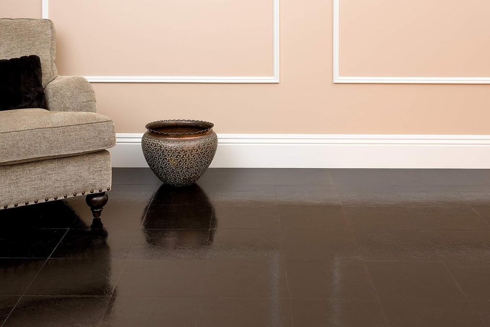 These vinyl floor tiles are a game-changer! Super easy to install—just peel and stick. The black pattern looks sleek and modern, perfect for updating any room. They feel durable and the semi-gloss finish adds a nice touch. Great for kitchens, basements, or bedrooms. Love that they come with a 5-year warranty too!