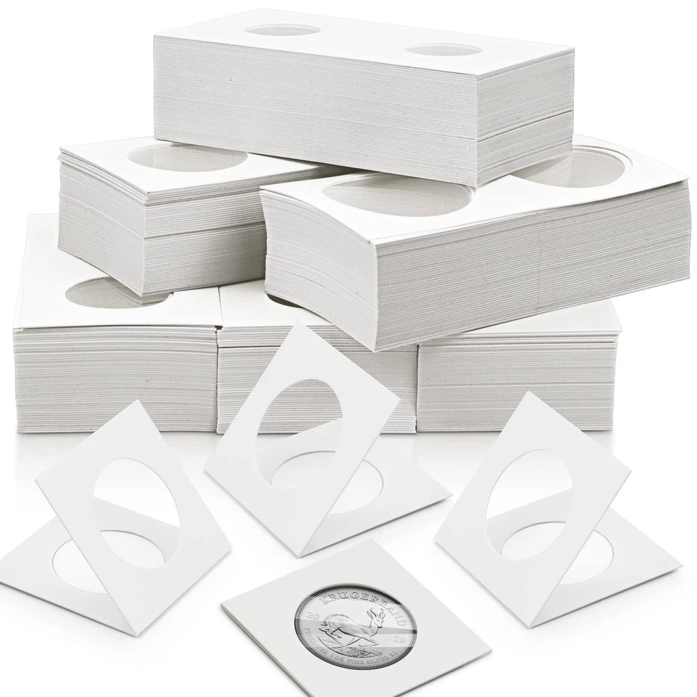 Nexxxi 300 Pcs Cardboard Coin Holder, 6 Sizes 2 by 2 inch currency holders for Coin Collection Supplies Great gift for your friends, especially for coin collecting lover! Specifications: Material: cardboard Cardboard Size: 3.94 x 1.97 inch/ 10 x 5 cm Folded Size: 1.97 x 1.97 inch/ 5 x 5 cm Windows Diamete: 20.5 mm/ 0.8 inch, 23 mm/ 0.9 inch, 25 mm/ 0.98 inch, 27.5 mm/ 1.08 inch, 31.5 mm/ 1.24 inch, 40 mm/ 1.57 inch Quantity: 300 pcs Package includes: 300 x Cardboard Coin Holder Made of high-quality cardboard, safe crystal clear windows, offer great protection for your coins. 6 different sizes can holder most popular sizes includes 50 penny/ dime, 50 nickel, 50 quarter, 50 half dollar, 50 small dollar, 50 large dollar. Just fold with coin inside, then seal with staples or tape, you can note coin details. Great coin collection supplies, they are safe for long-term storage, inexpensive and practical. Package includes 300 pcs coin holders in 6 assorted sizes, 50 pcs for each size.