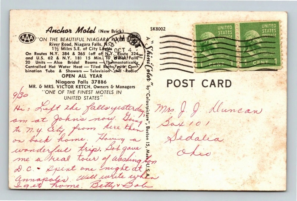 Niagara Falls NY-New York Anchor Motel Antique c1955 Vintage Souvenir Postcard