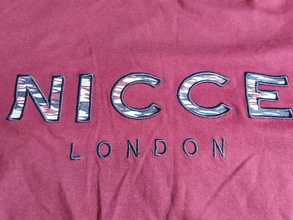 Nicce T Shirt Embroidered Spell Out Maroon Size S BNWOT.